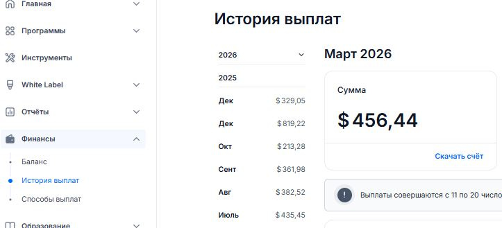 Все выплаты с партнерок в USDt, поэтому доход в рублях может быть разным в зависимости от курса.