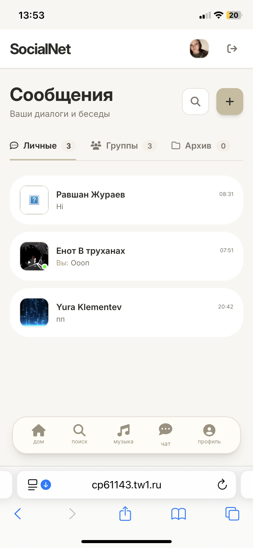 Сайт соц-сеть готовая к запуску, если хотите какие либо доработки могу доделать под вас, все страницы оптимизированы под все устройства по функционалу и дизайну вы можете перейти и оценить все, этот сайт делал для себя в связи с проблемой по здоровью нужны деньги по этой причине продаю! Сайт на хостинге все данные от хостинга логины и пароли получите и поменяете! Готов к торгу небольшому, сам не стал раскручивать так как нет финансов на это, спасибо за понимание!