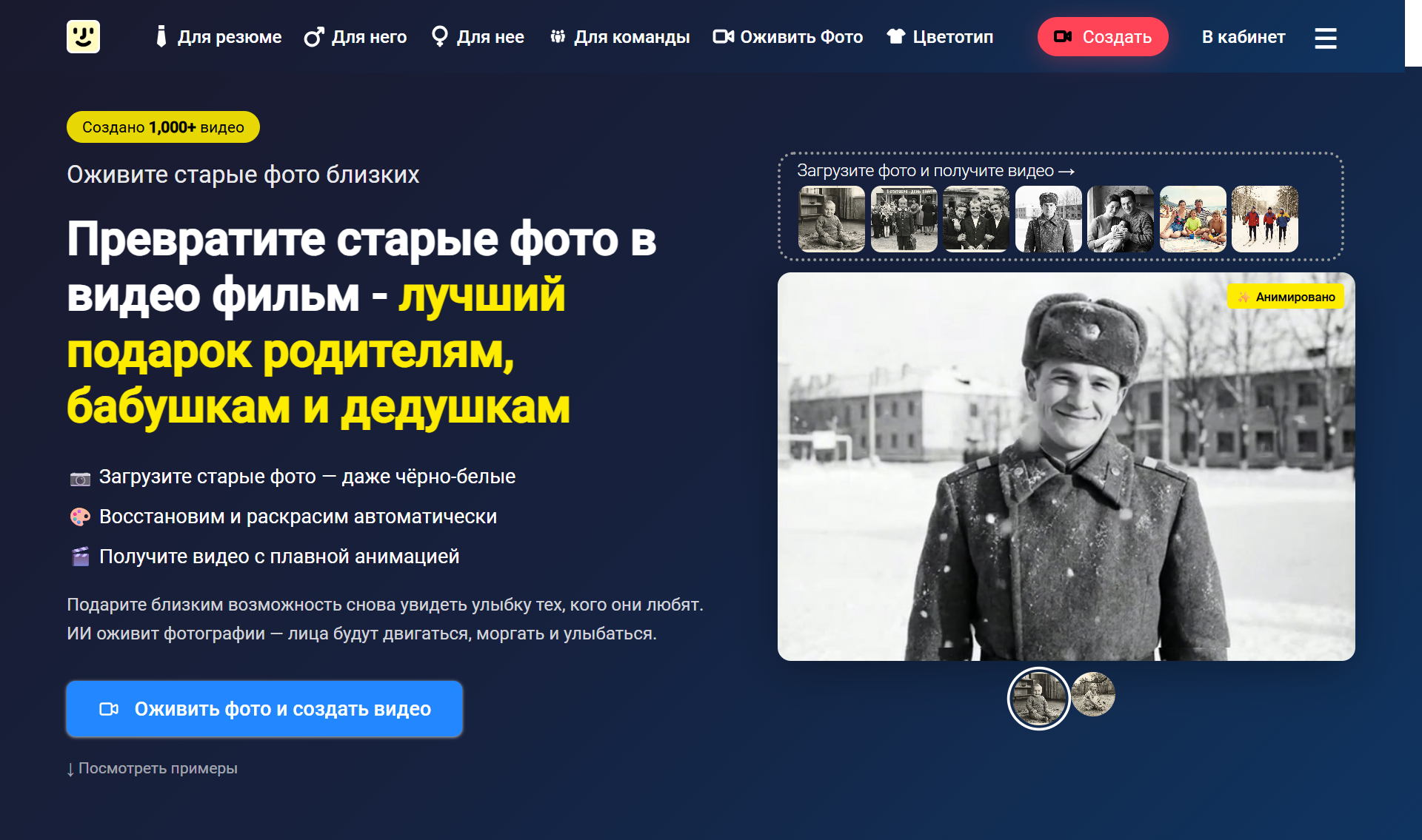 - Оживление фото / создание видеоподарков (для старшего поколения - вирусный формат)