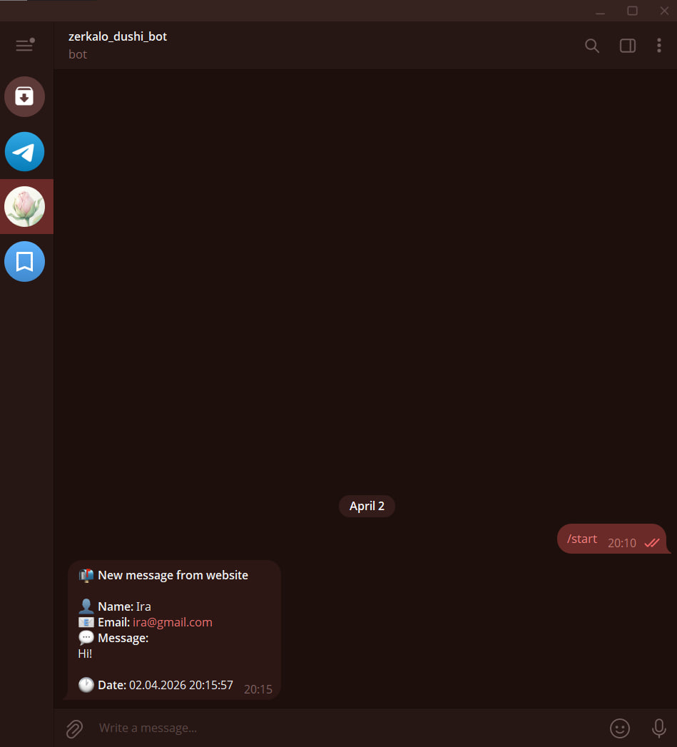 Telegram-бот — для автоматического приёма заявок, обратной связи и сбора лидов прямо в ваш мессенджер.