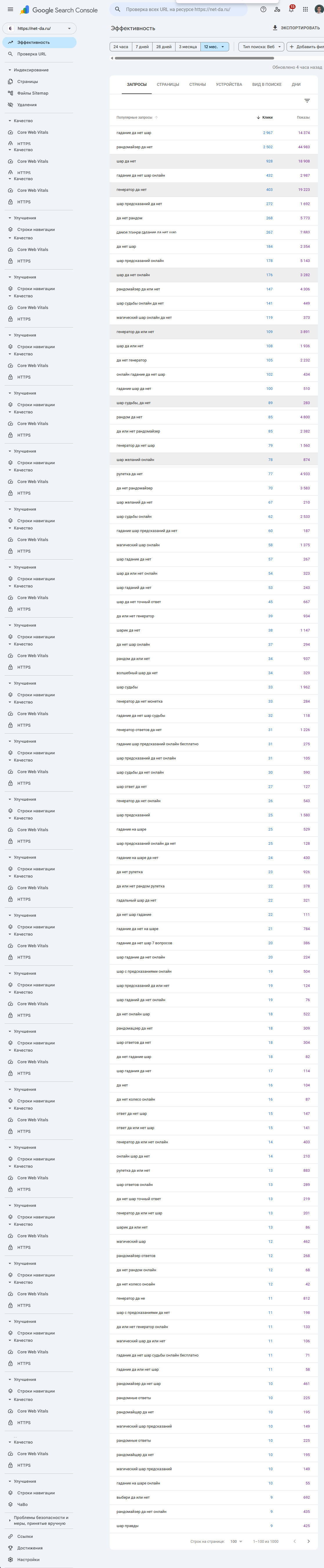 SEO-потенциал высокий в нише развлечений/гадалок, низкая конкуренция.