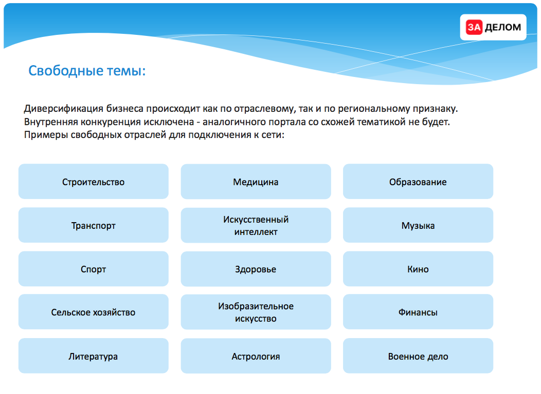 Приглашаю партнеров-инвесторов присоединиться к быстрорастущей бизнес экосистеме. В группе уже более 20 отраслевых порталов. Прибыльно, перспективно. Быстрый рост капитализации соразмерно расширению всей сети. Помимо творческого портала есть и другие темы. Презентацию смотрите в прикрепленных слайдах.Управление сайтом (администрирование, тех. обслуживание, обновления, маркетинг) мы берем на себя (за 50% от прибыли). Вы выступаете в роли партнера-инвестора со 100% правами собственности на портал и домен.