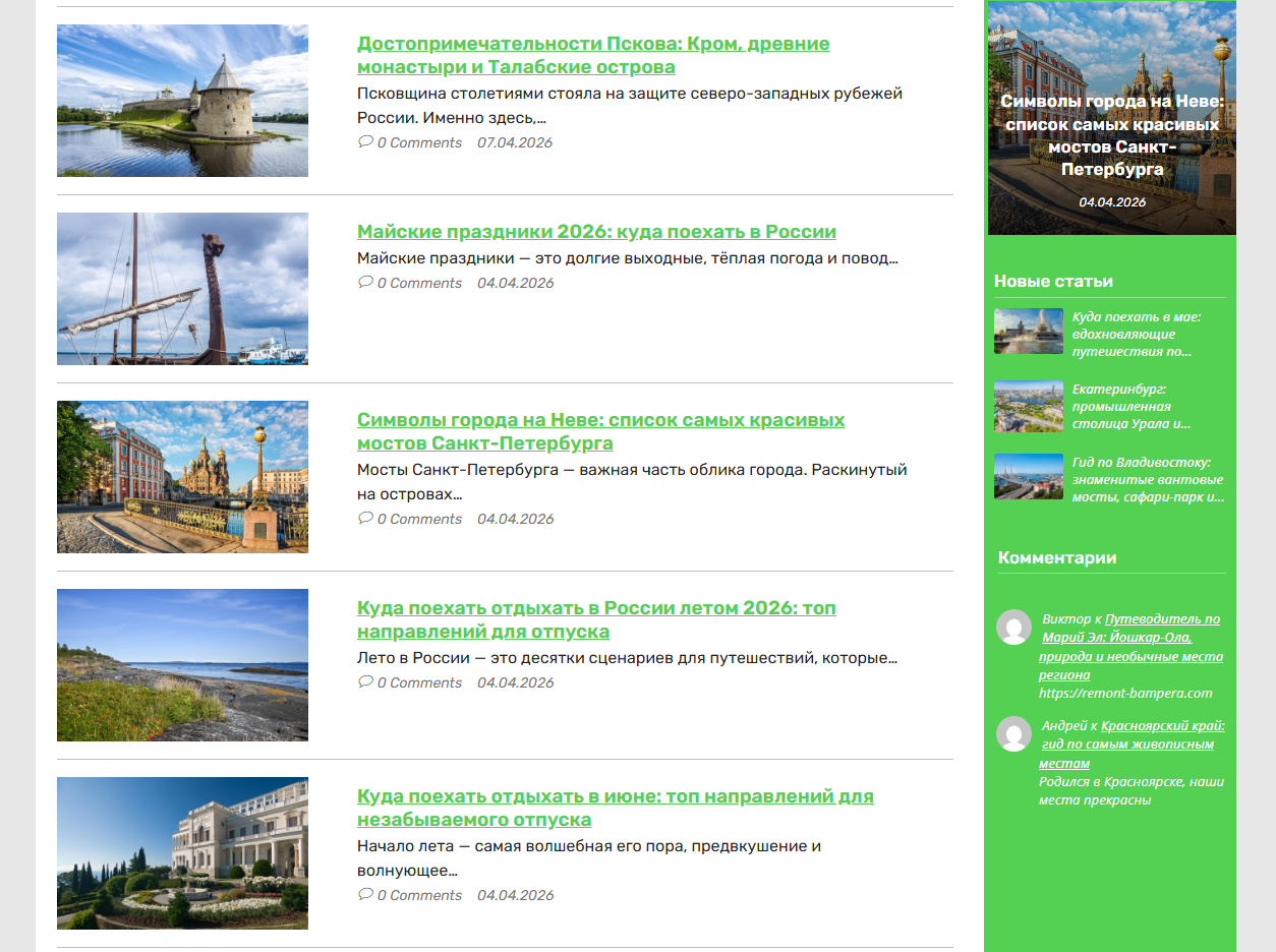 Автонаполняемый сайт о туризме в России, ИКС 80