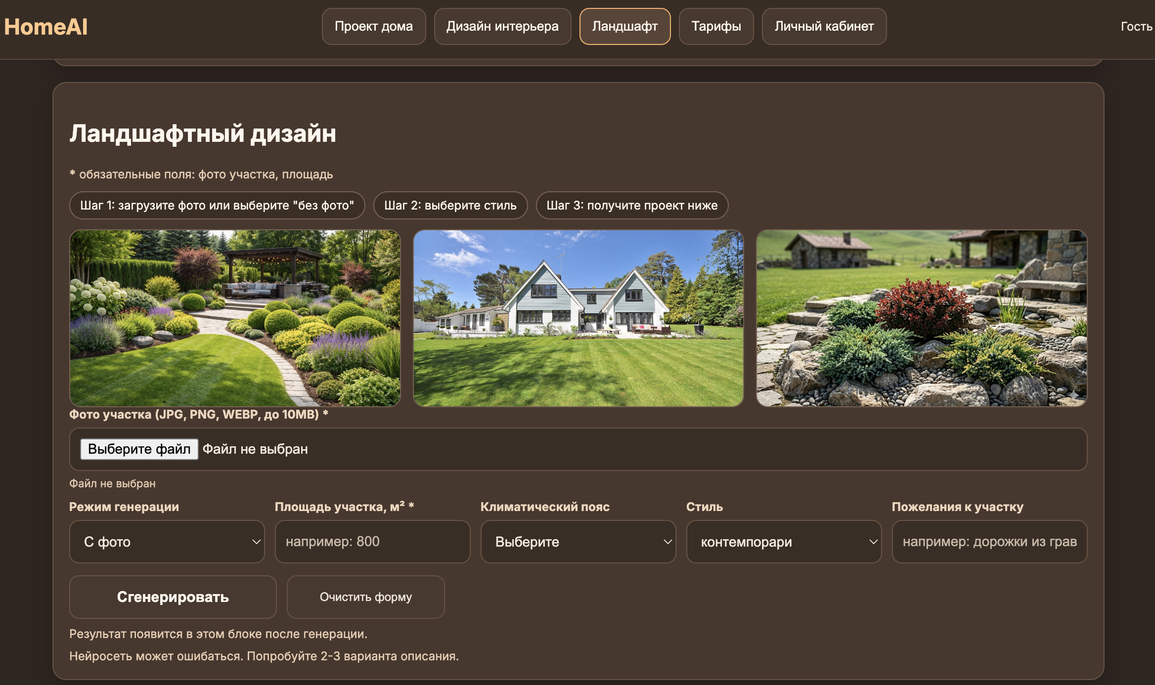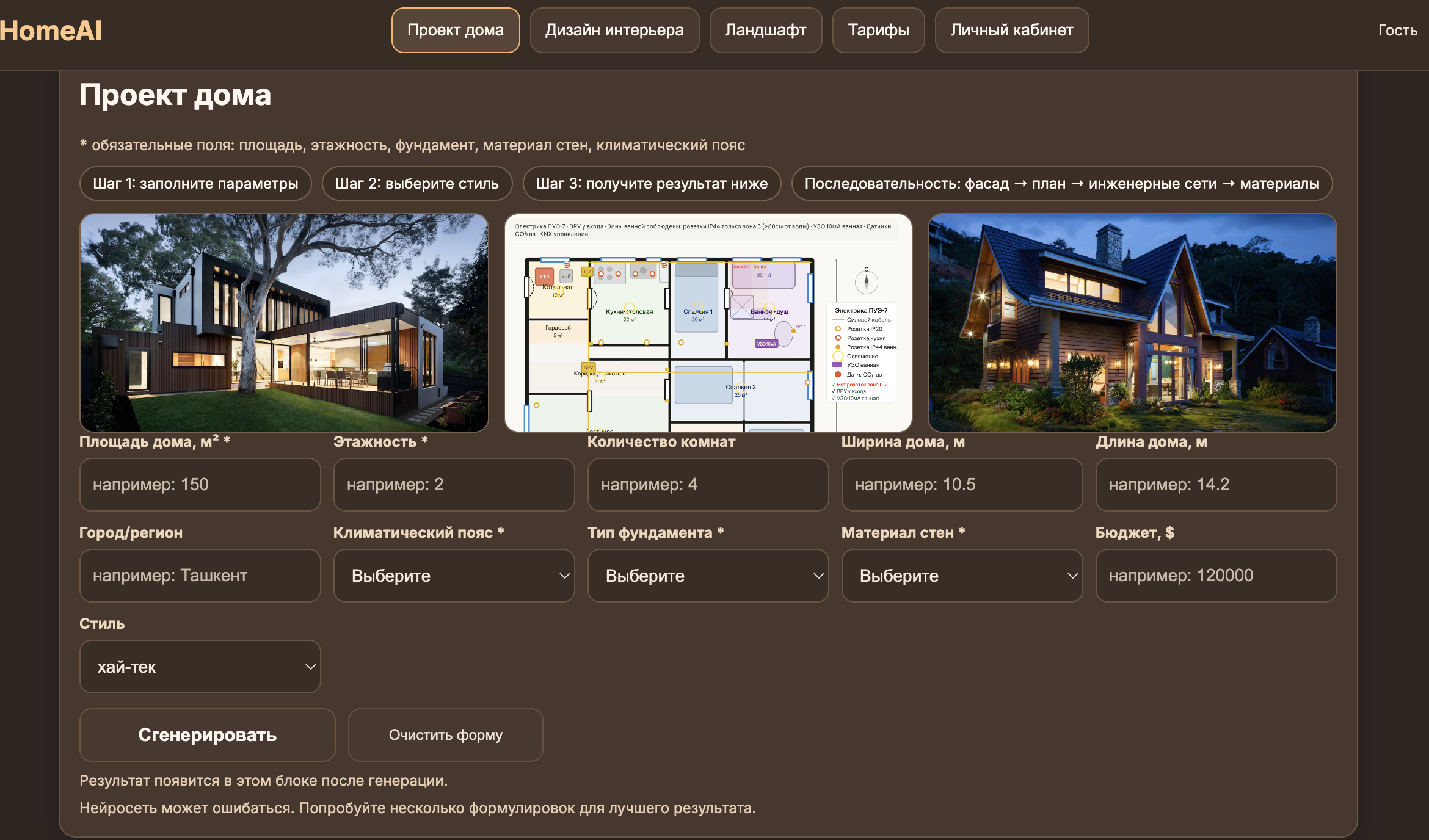 - Генерация фасадов дома по параметрам (стиль, площадь, материалы)