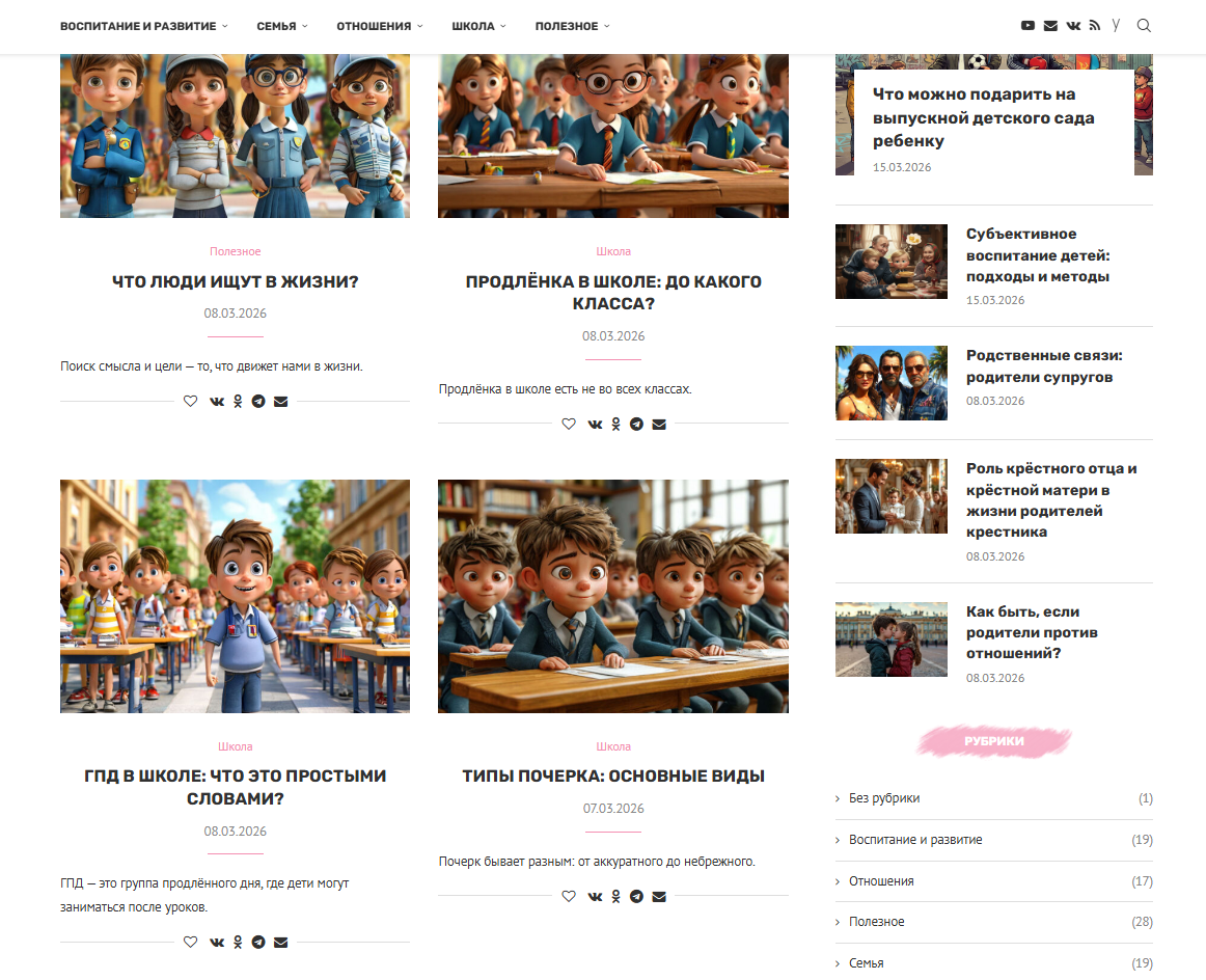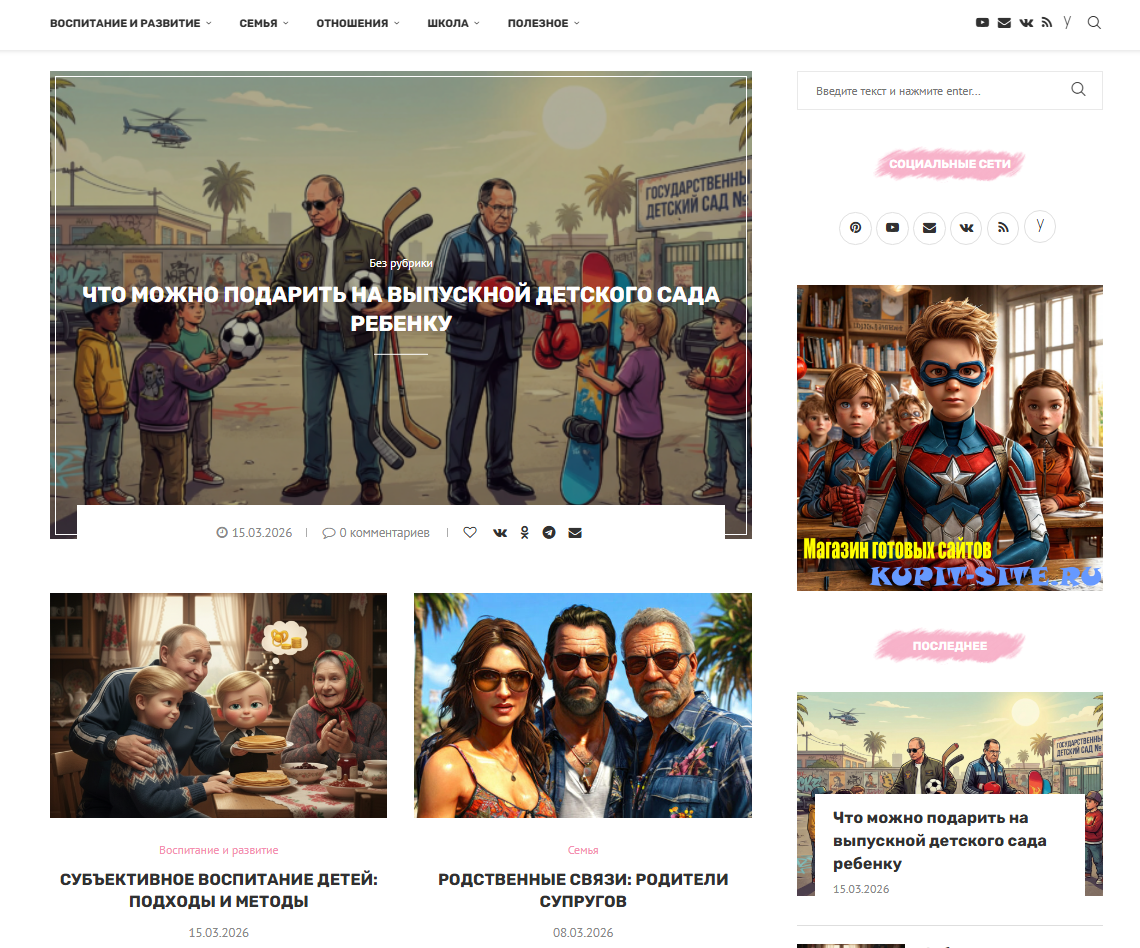 Сайт о воспитании детей ИКС 90 уникальный генерированный нейросетями контент