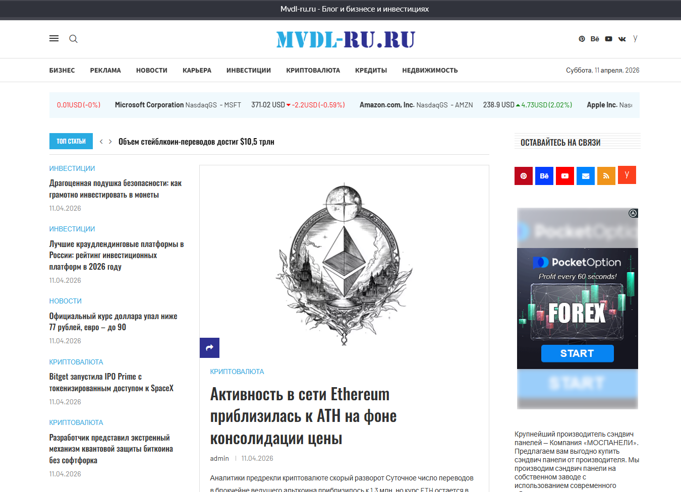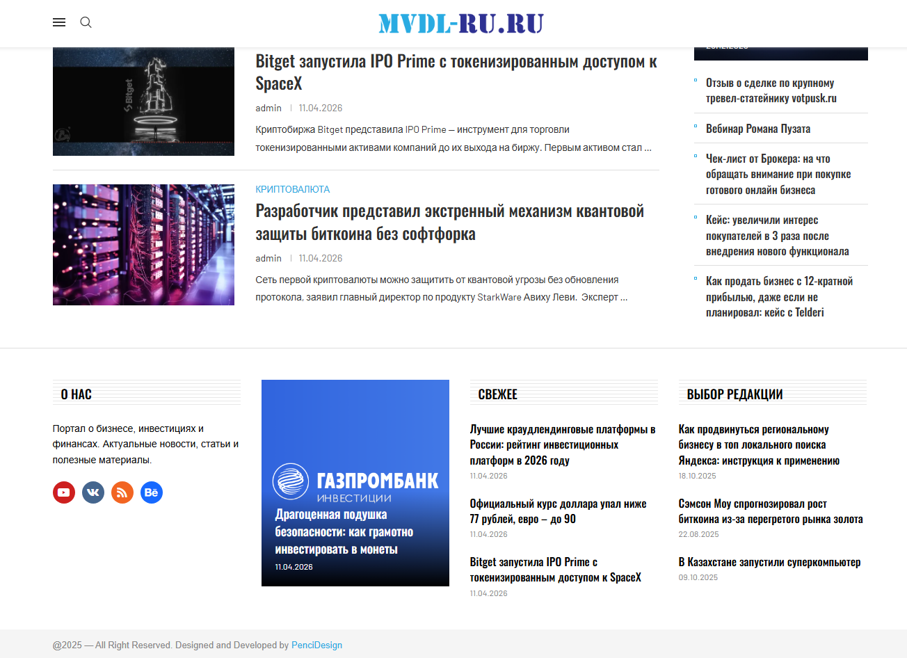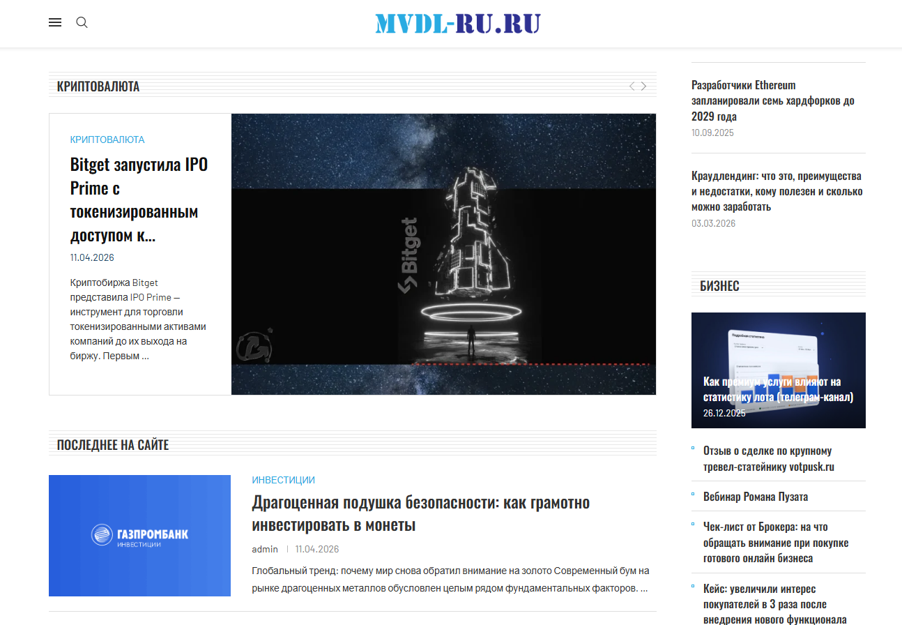 Автонаполняемый блог о бизнесе и инвестициях с коротким запоминающимся доменом