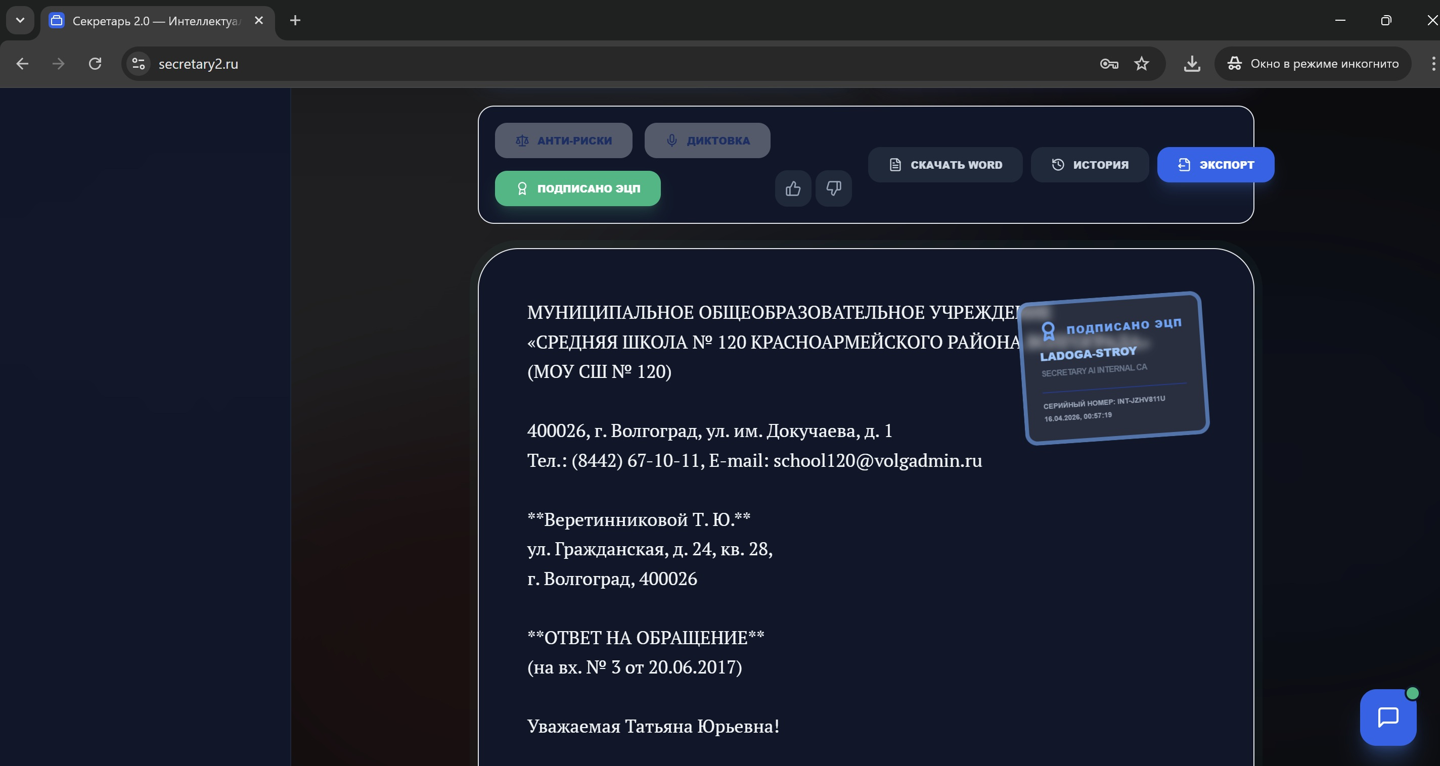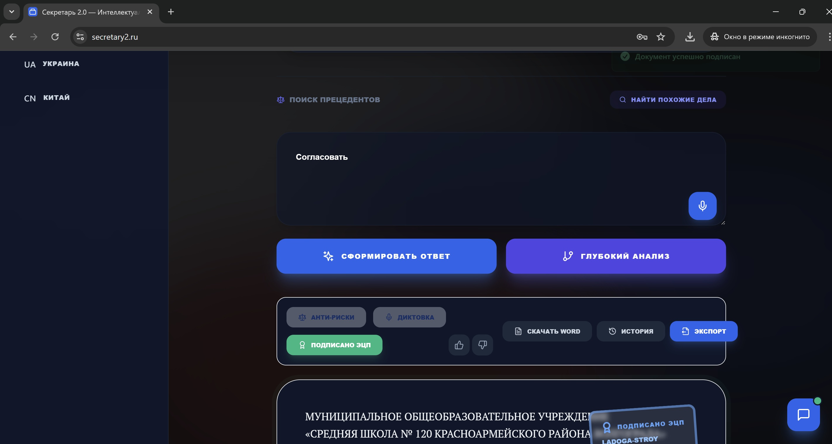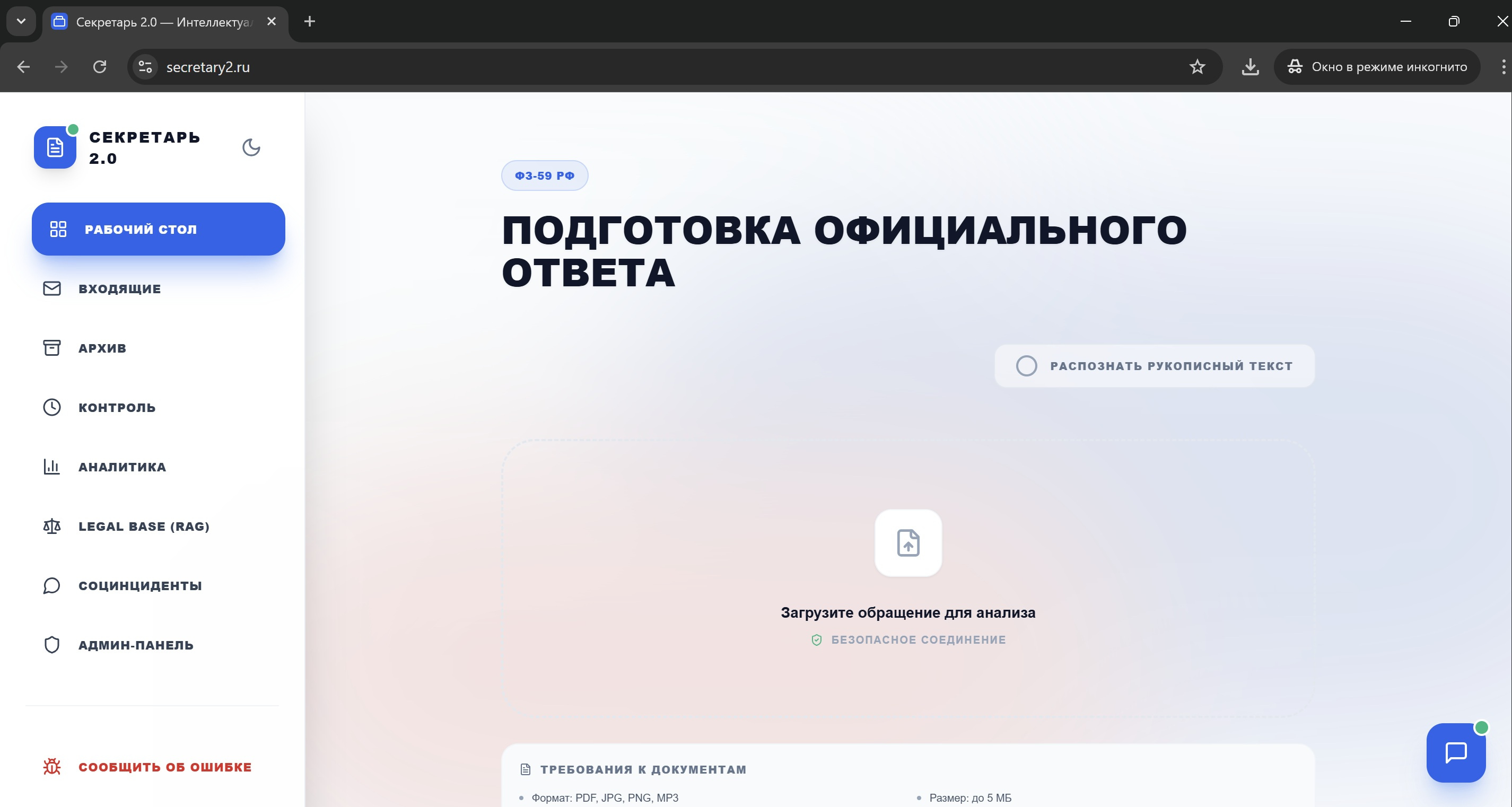 Продаётся готовый сервис «Секретарь 2.0» — интеллектуальная система для автоматизации работы с обращениями граждан, организаций, ведомств и обработкой входящей корреспонденции.