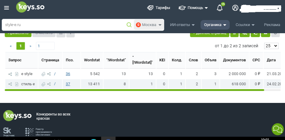 - домен - возраст домена 16 лет 2 месяца стоимостью по оценке be1 - 15 903 руб. , по данным keys.so сайт занимает 36 и 37 место по двум ключевым словам (см. приложение).