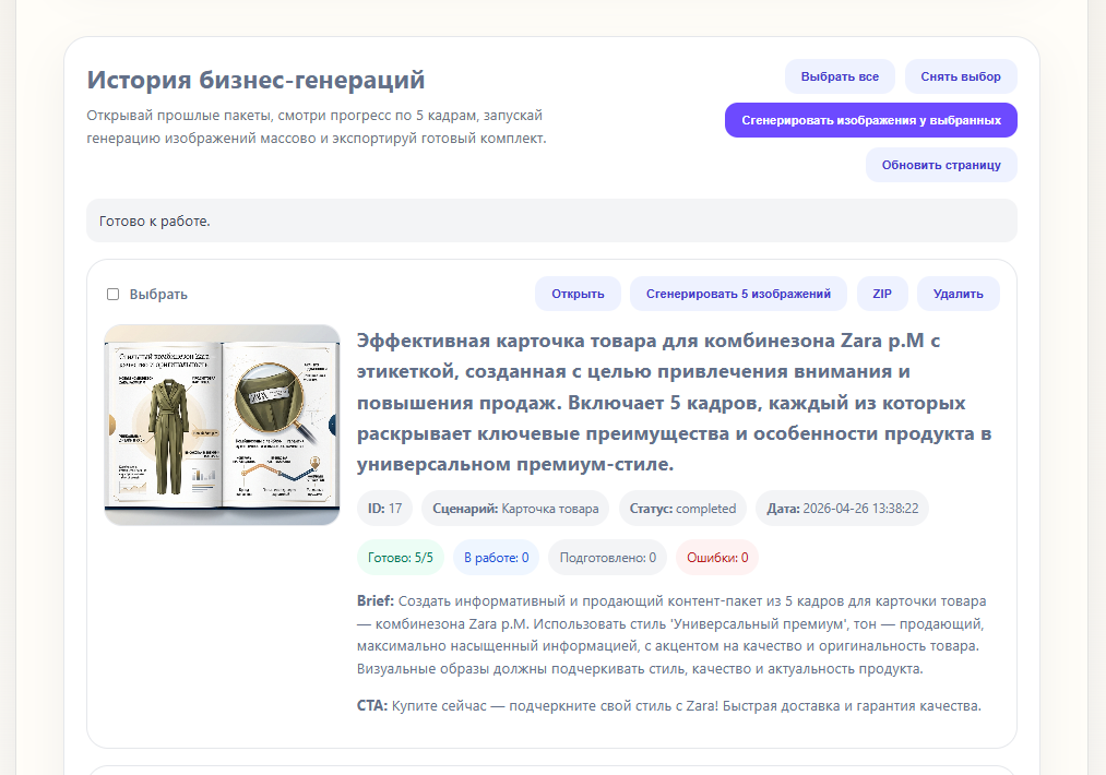 Продаётся готовый интернет-проект в нише искусственного интеллекта: AI-сервис для генерации серий промтов и изображений для бизнеса. (пример по ссылке выше).