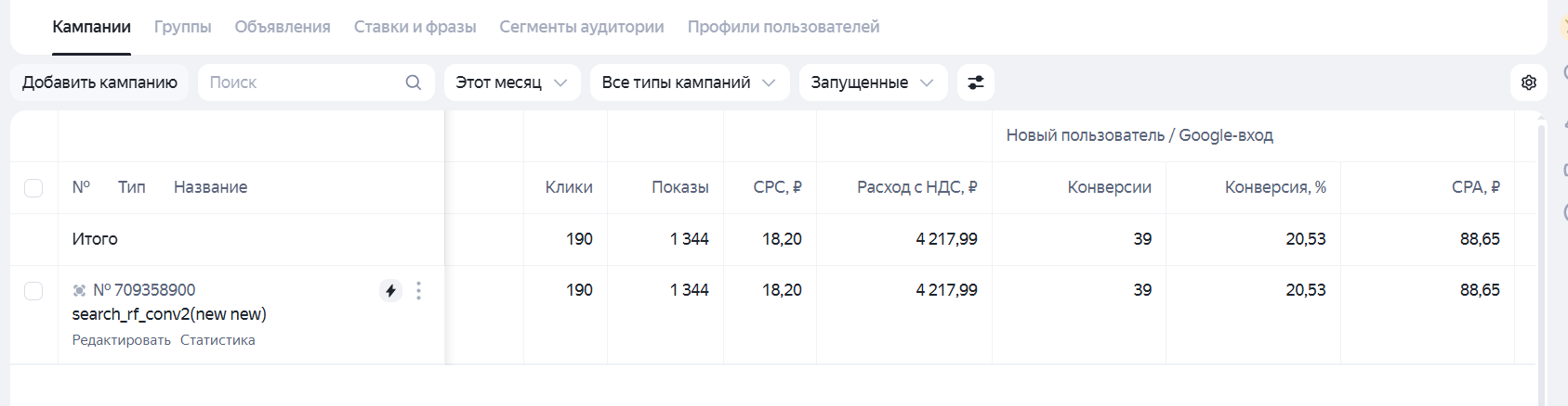 Источник трафика: Пробовал только Поиск Яндекс.Директ с оптимизацией конверсий. Стоимость регистрации ~80-90 рублей с учетом НДС. В день доходило до 30 регистраций на текстовой кампании.