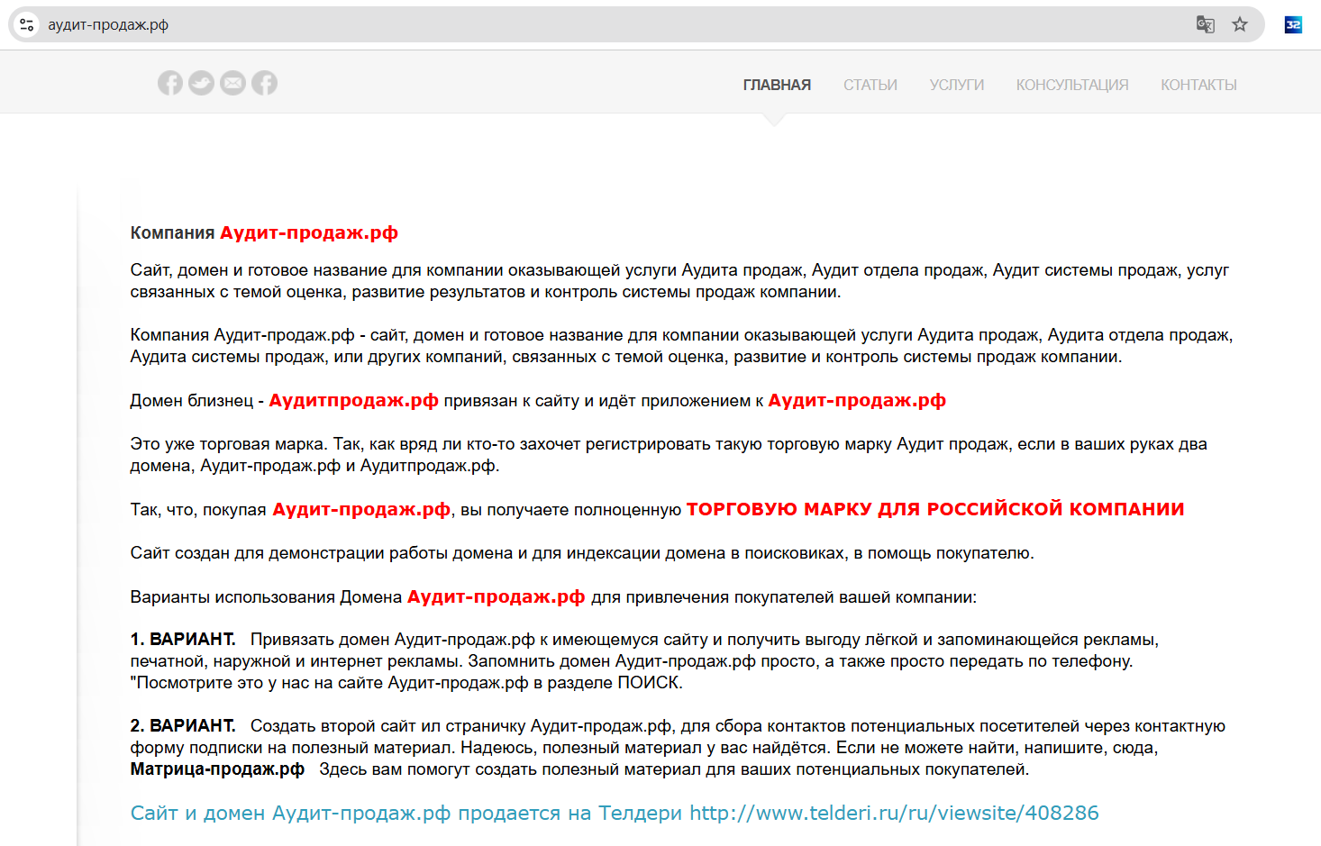Домен близнец - Аудитпродаж.рф привязан к сайту и идёт приложением к Аудит-продаж.рф