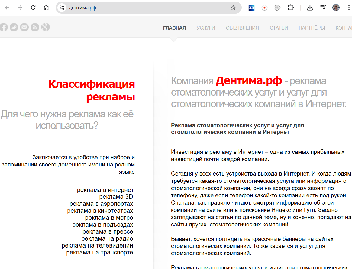 Компания Дентима.рф - реклама стоматологических услуг и услуг для стоматологических компаний в Интернет.