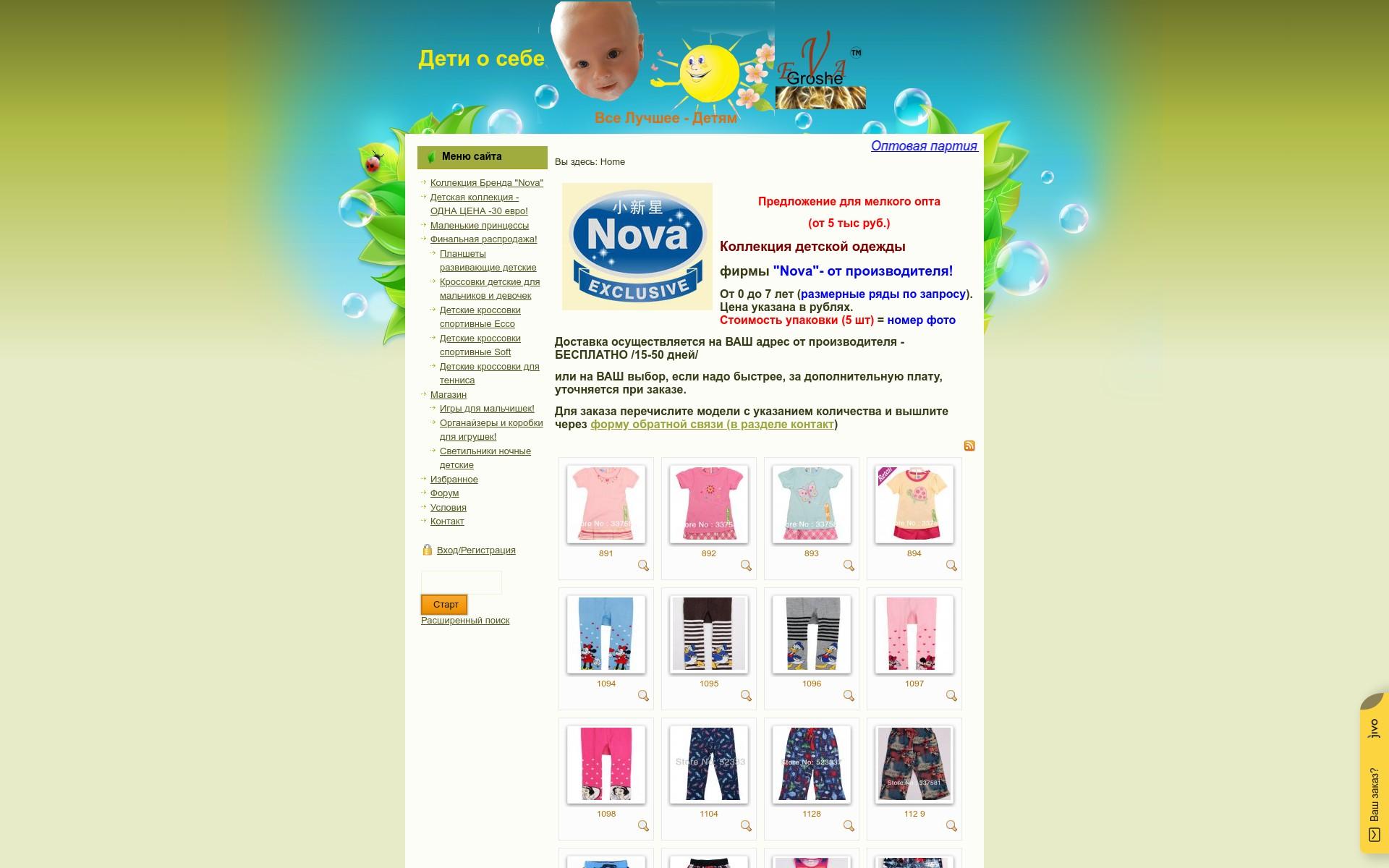 Сайт прекрасно раскручен по запросам "коллекция детской одежды бренда "Nova"- большой интерес покупателей, в том числе ОПТОМ!.