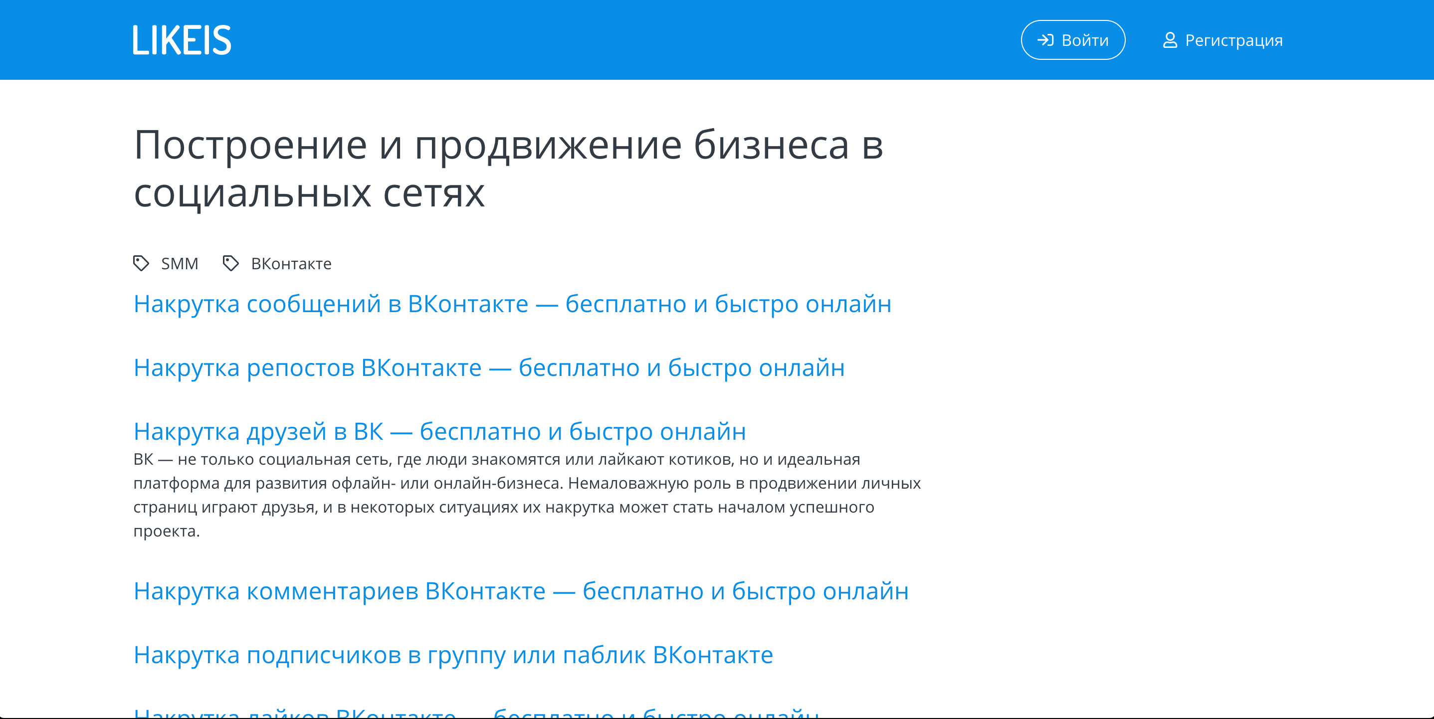 — Накрутка ВКонтакте: лайков, друзей, подписчиков, репостов, просмотры и тп.