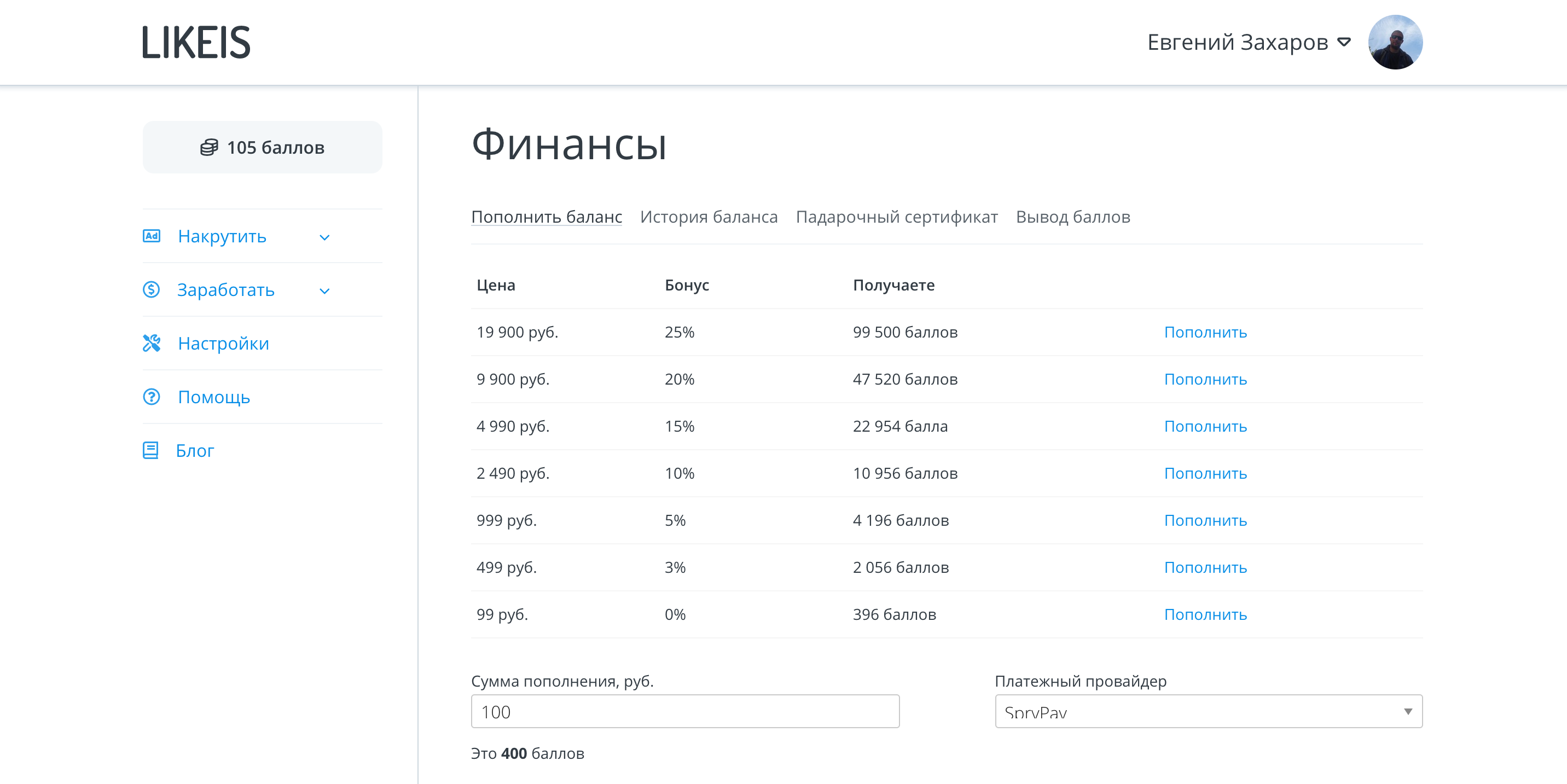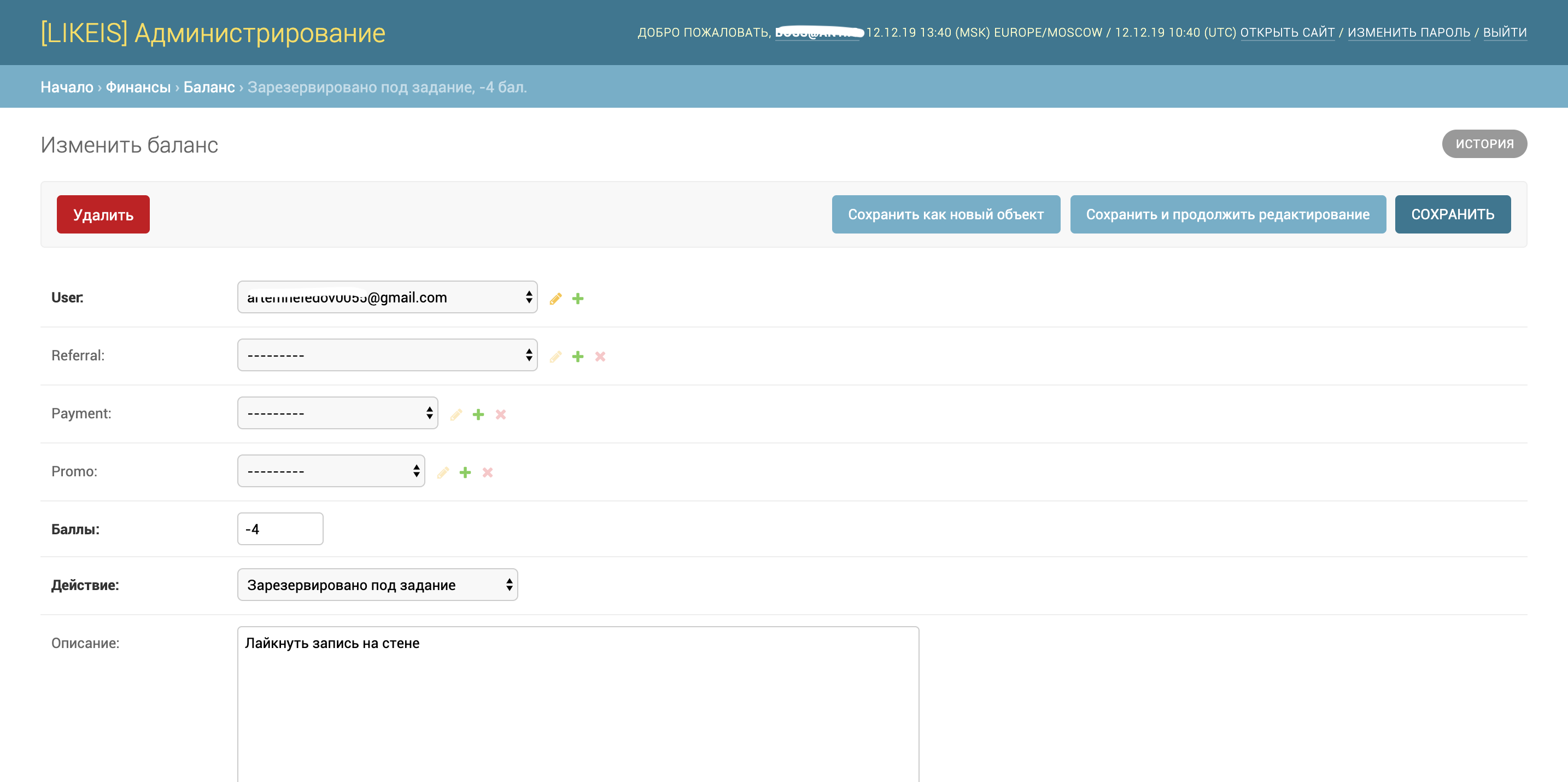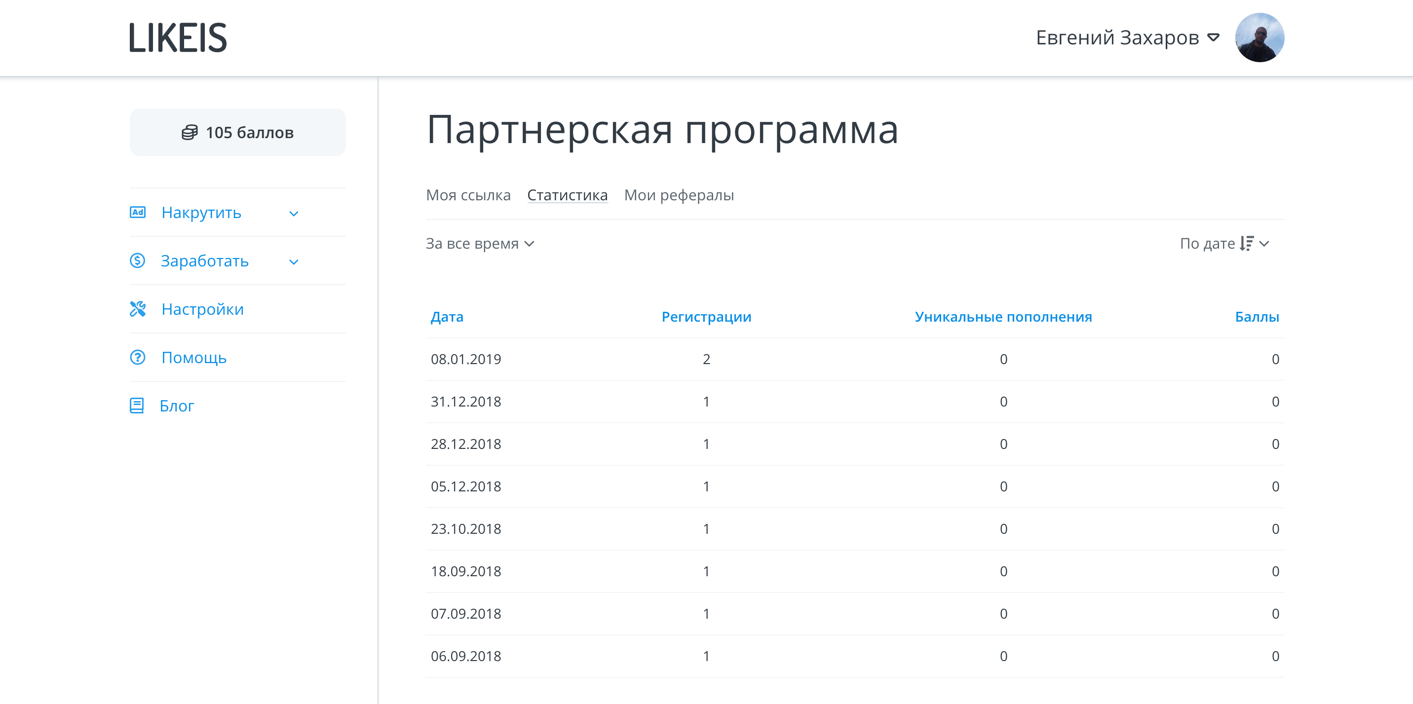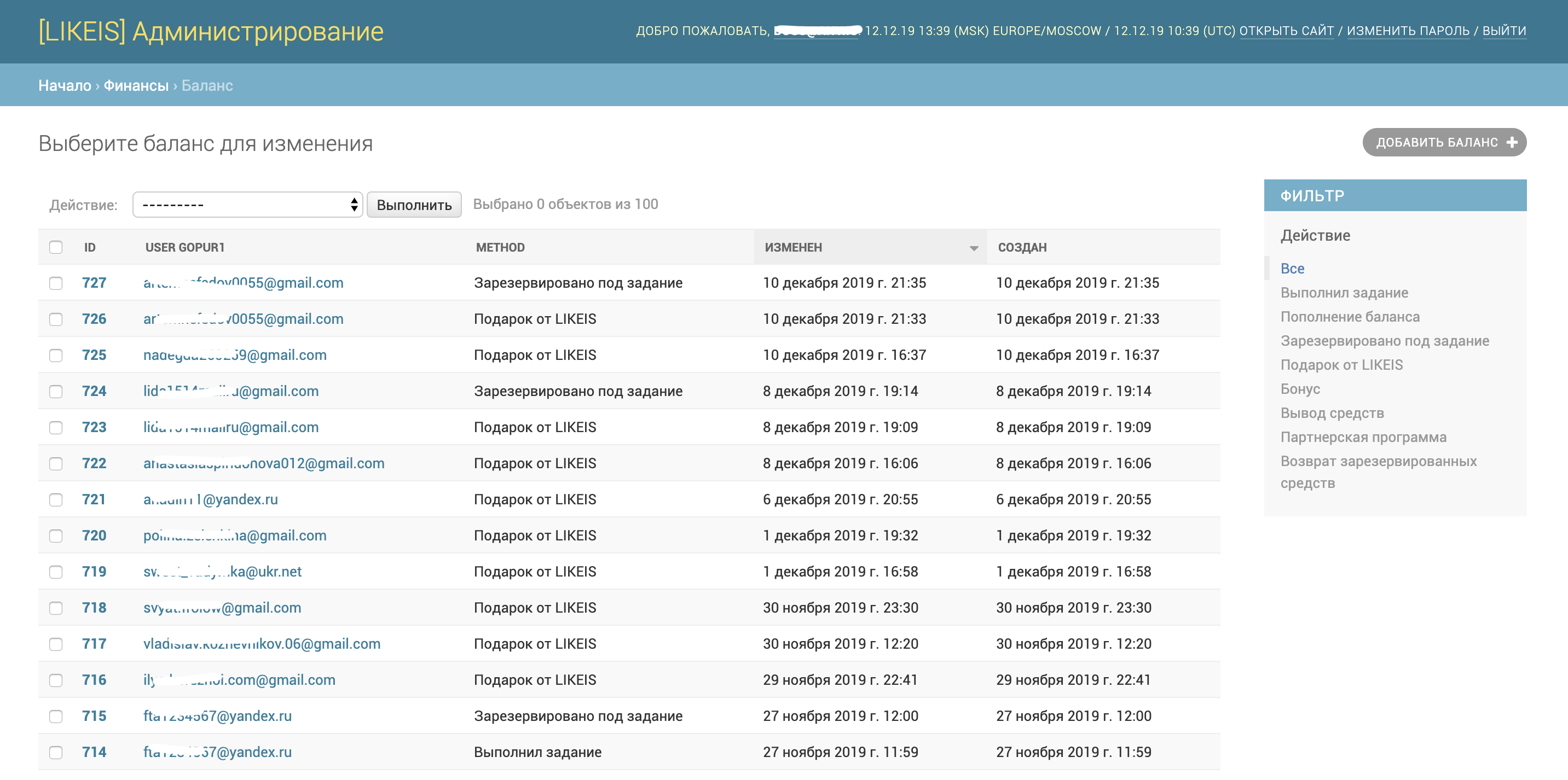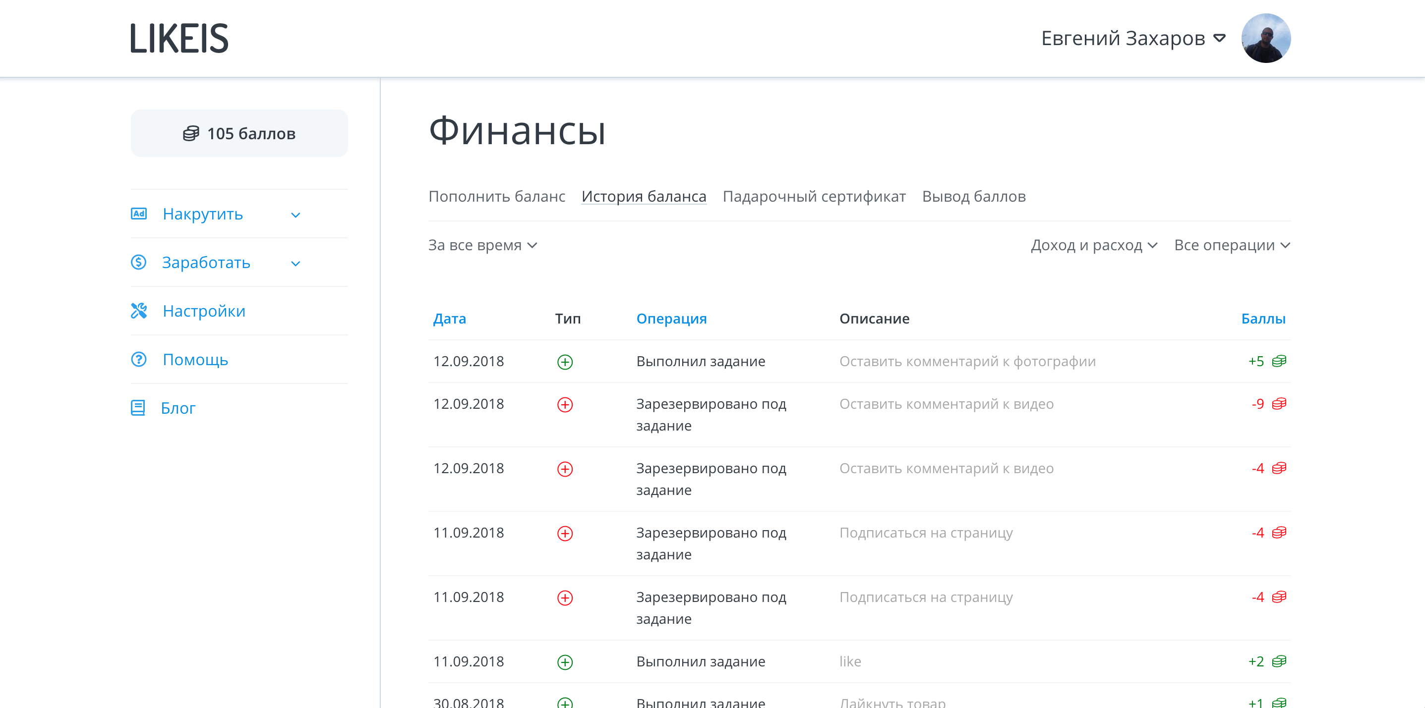 — Полный финансовый отчет о пополнении / движении / выводе баллов.