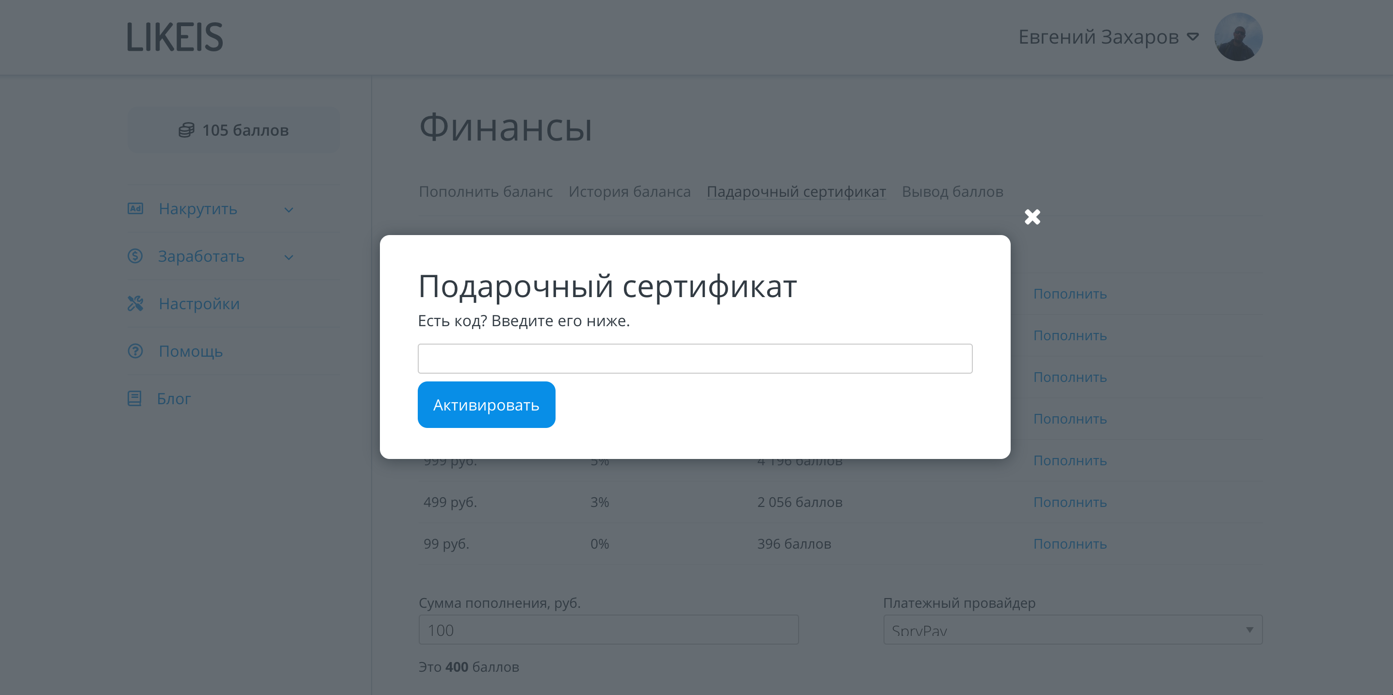 — Подарочные сертификаты для привлечения блогеров (3 вида: ограниченные по количеству и ограниченные по времени + комбо)