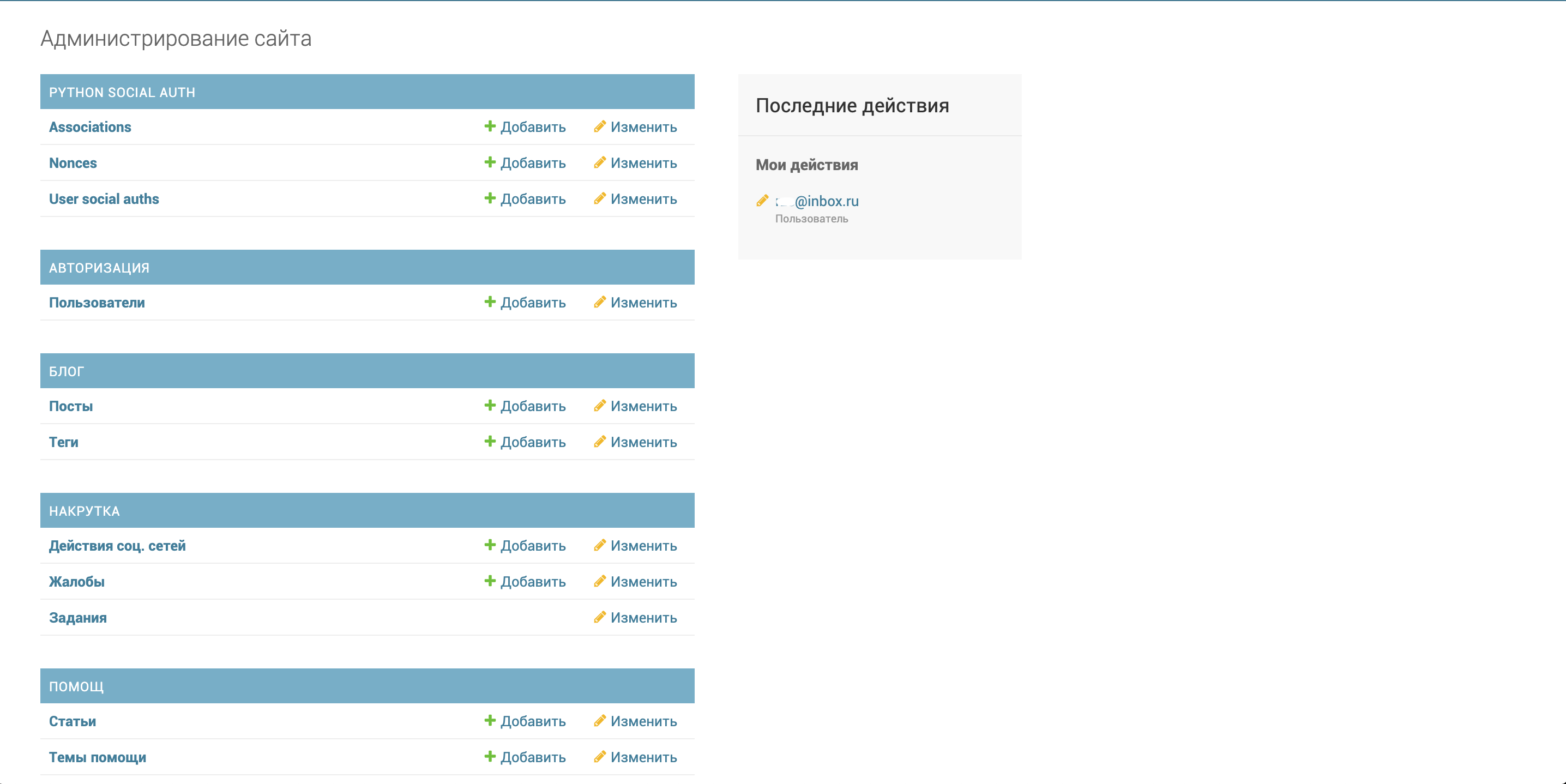 — Удобная админка с возможностью контроля и изменения практически всех данных без знания программирования.