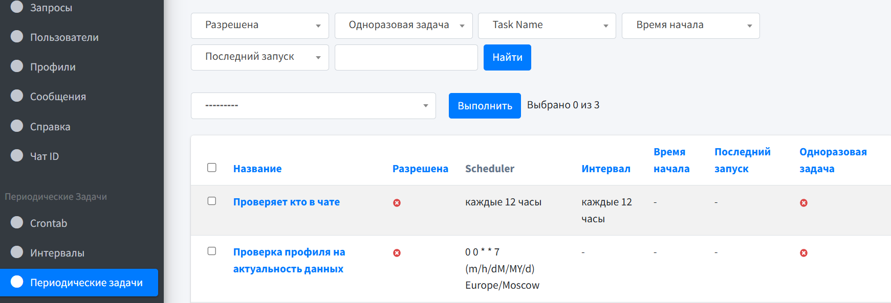 - Вся информация (профили участников, запросы, рассылки, статусы, настройки) доступна через Django Admin.