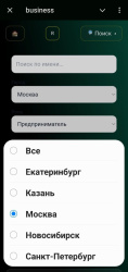 Mini App: фильтрация по городам, сферам, имени.