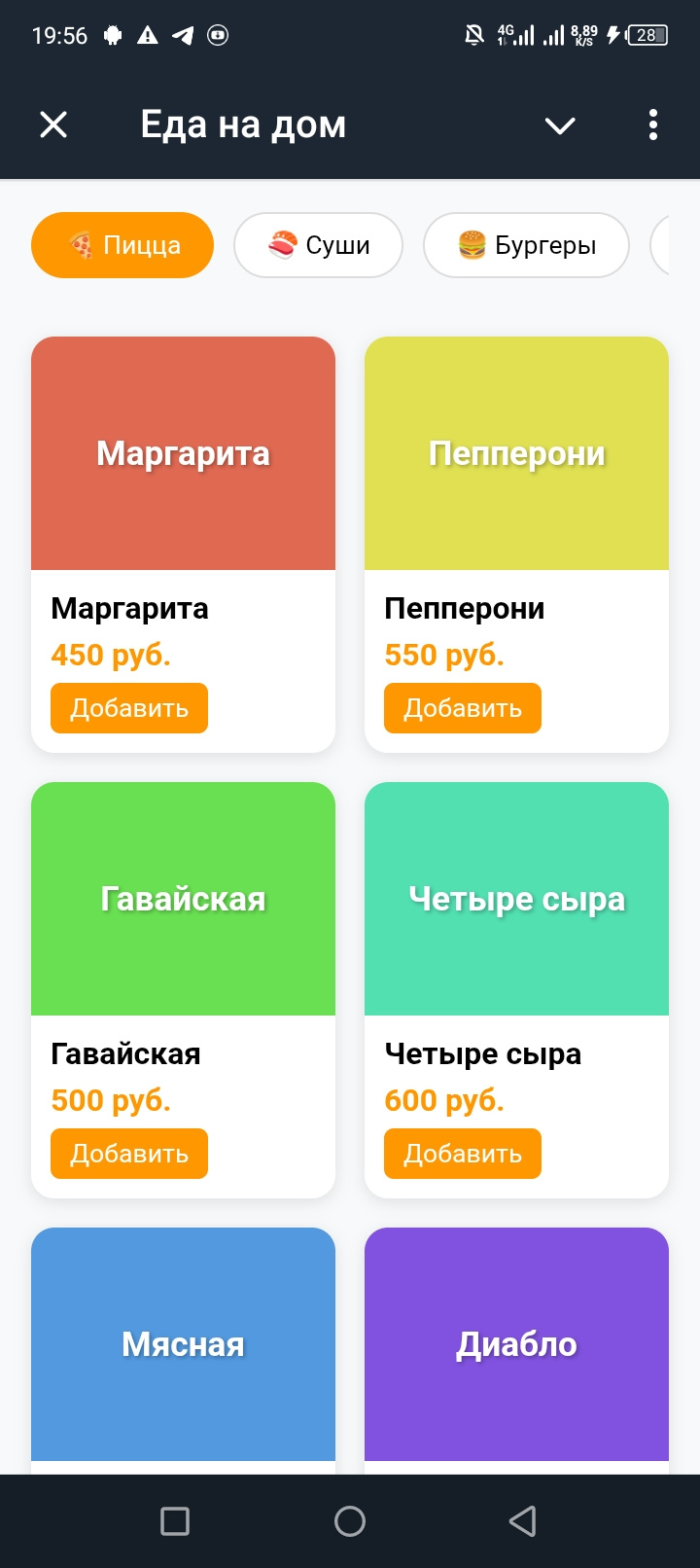 - Удобный каталог с категориями и товарами (более 60 позиций).