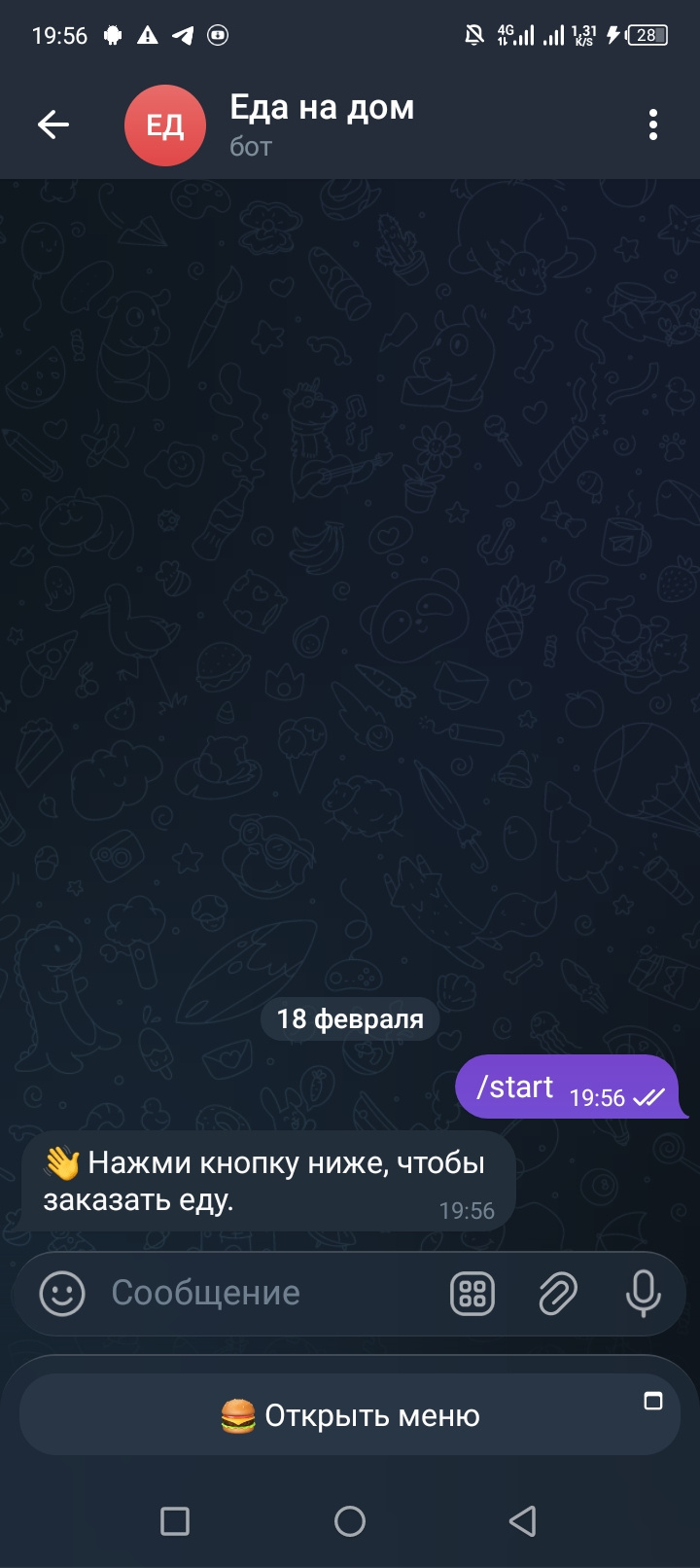 ???? **Telegram-бот для службы доставки еды (клиент + курьер + онлайн-оплата)**