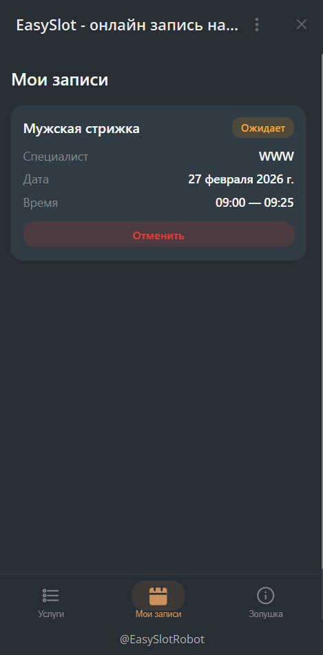 EasySlot упрощает управление бизнесом и делает запись клиентов удобной и быстрой.