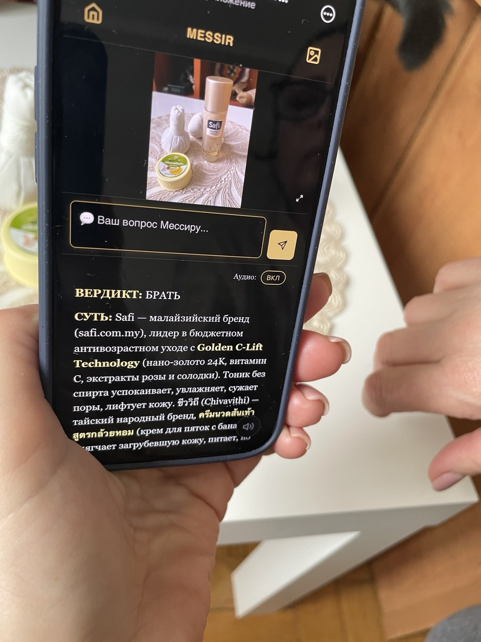 — Интеграция с AI (распознает любые объекты: косметику, продукты, электронику, запчасти; намеренно ограничено распознавание лиц).