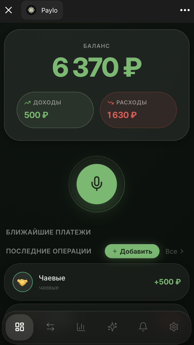 Продаётся готовый проект: приложение внутри Telegram для учёта доходов и расходов с голосовым вводом и AI-помощником.