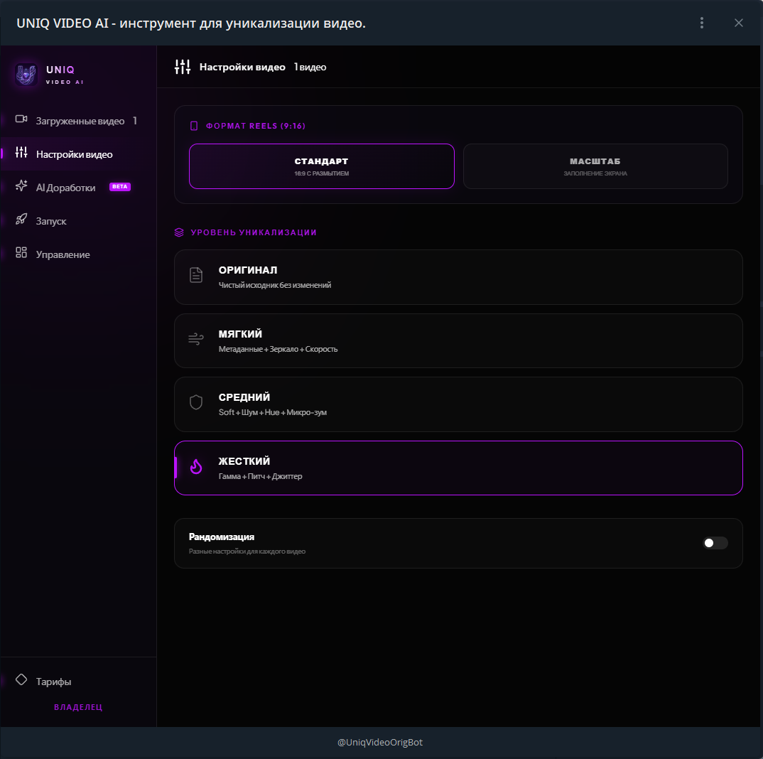 Перспективы: Рынок уникализации видео для Reels/TikTok сейчас на пике. Архитектура проекта позволяет легко добавить мультиязычность и выйти на международный рынок.
