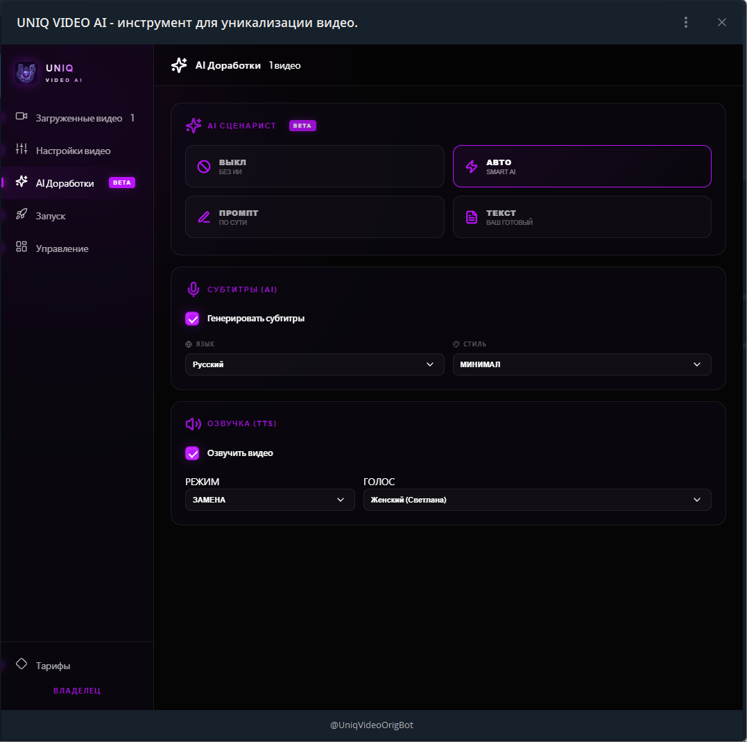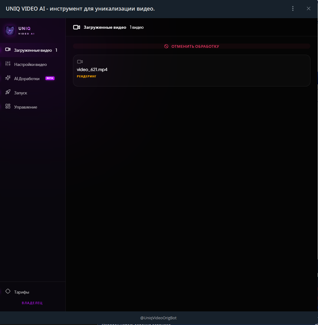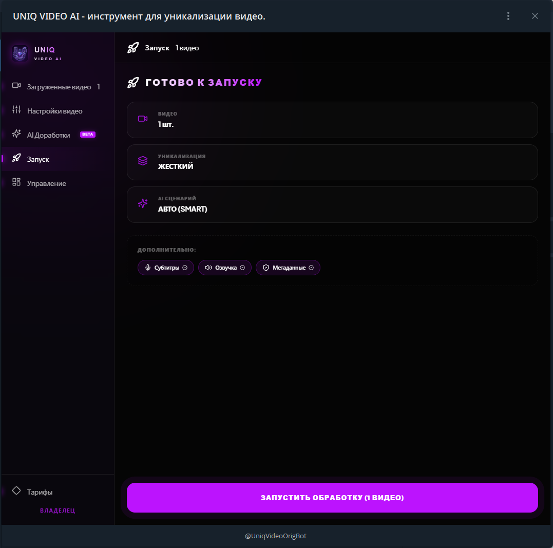 Продается готовая высокотехнологичная SaaS-платформа для автоматической уникализации видеоконтента с помощью ИИ. Проект объединяет мощный backend на FastAPI в формате Telegram Mini App.