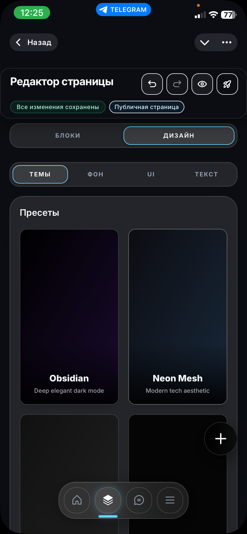 Продается готовый IT-бизнес (SaaS-продукт) под ключ: полнофункциональный конструктор страниц/микролендингов, работающий полностью внутри Telegram (формат Mini Apps). Ближайшие аналоги: Taplink, Linktree, но наш работает нативно в ТГ без редиректов в браузер.