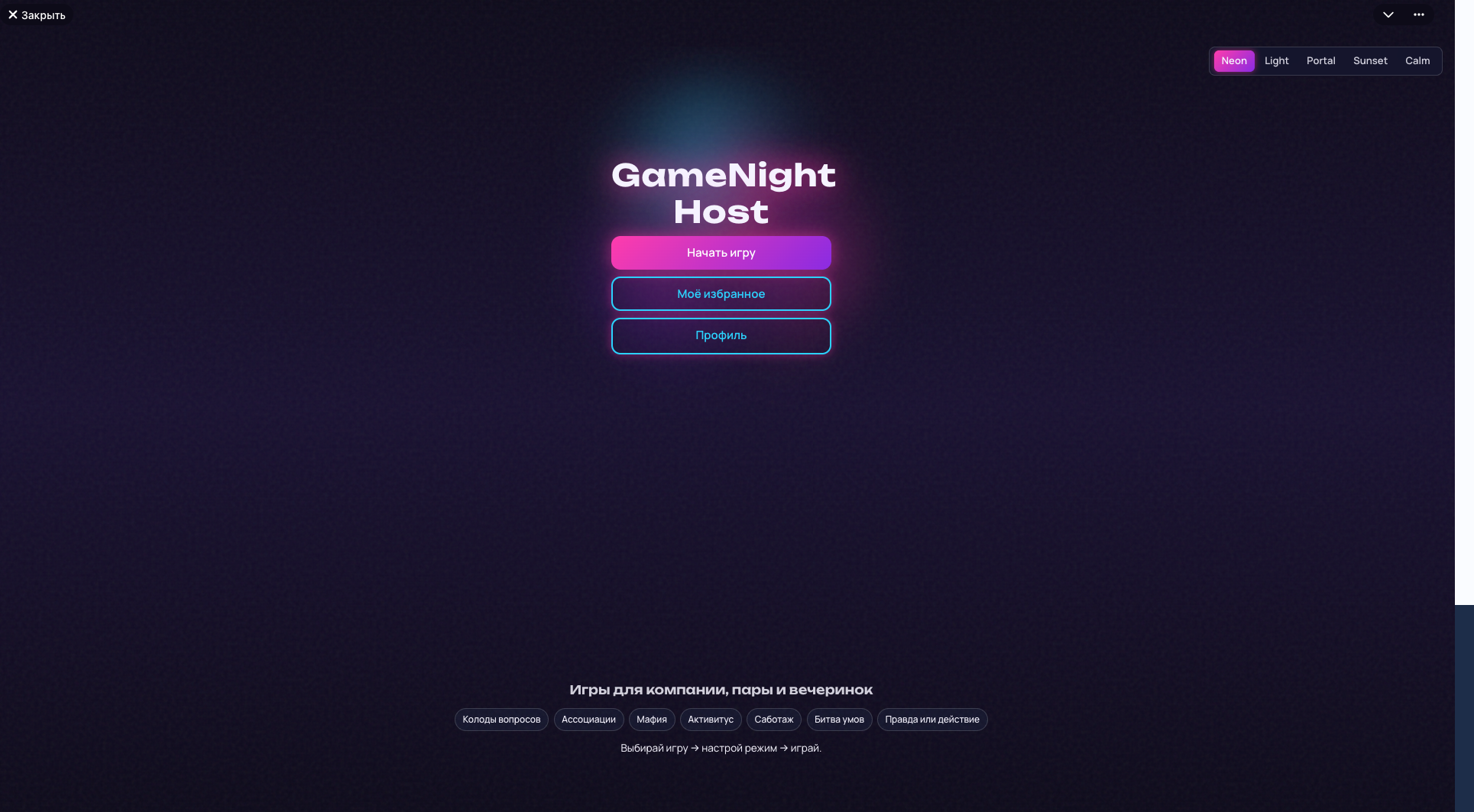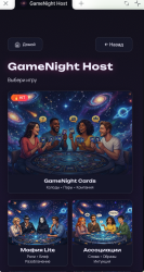 Продаётся Telegram Mini App GameNight Host — развлекательное приложение с карточными и настольными играми для компаний, пар, вечеринок и уютных вечеров.