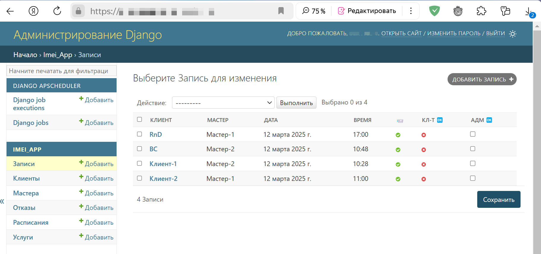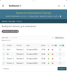 - Админка Django ( веб-приложение открывается прямо в боте) для управления записями, клиентами и расписанием.