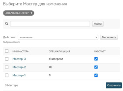- Просмотр всех записей (время, имя клиента, имя мастера,