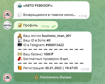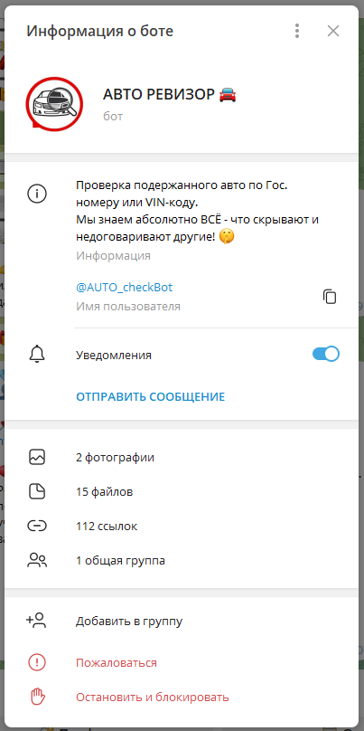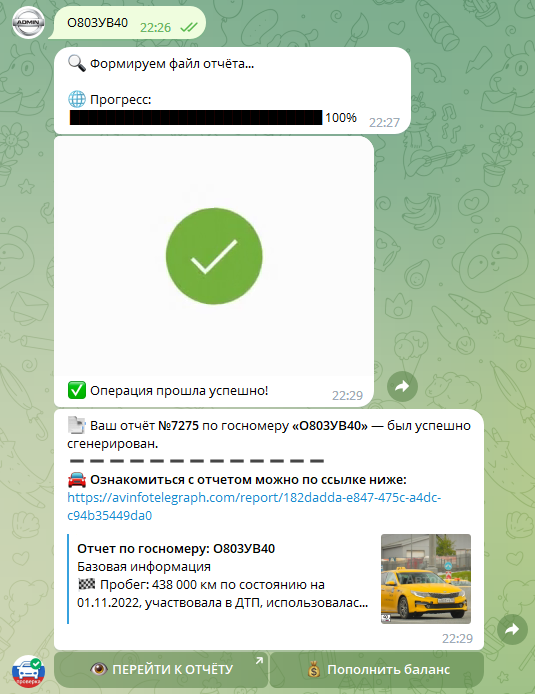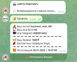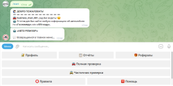 Telegram сейчас популярен! Не упустите нишу! Можете ознакомиться с примером бота по ссылке: https://t.me/avinfo_search_bot