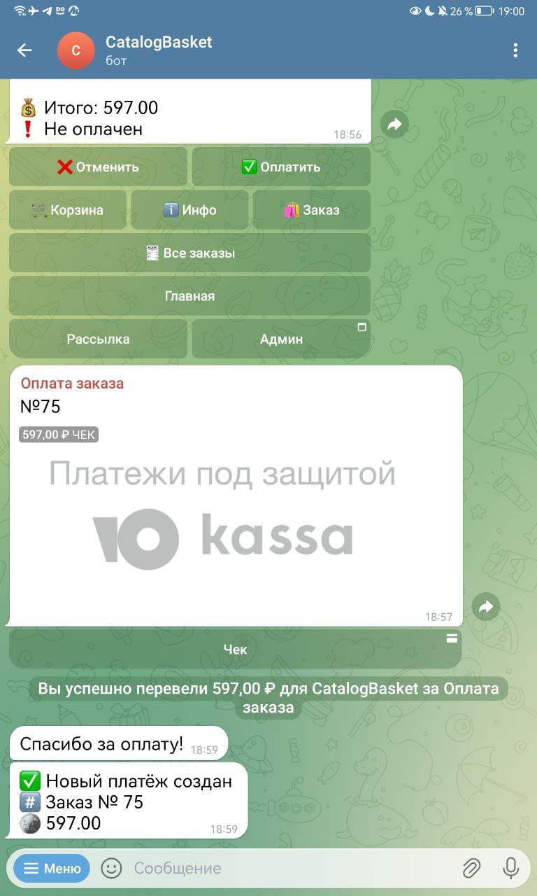 - Подтвердить оплату — пользователь нажимает кнопку, администратор получает уведомление