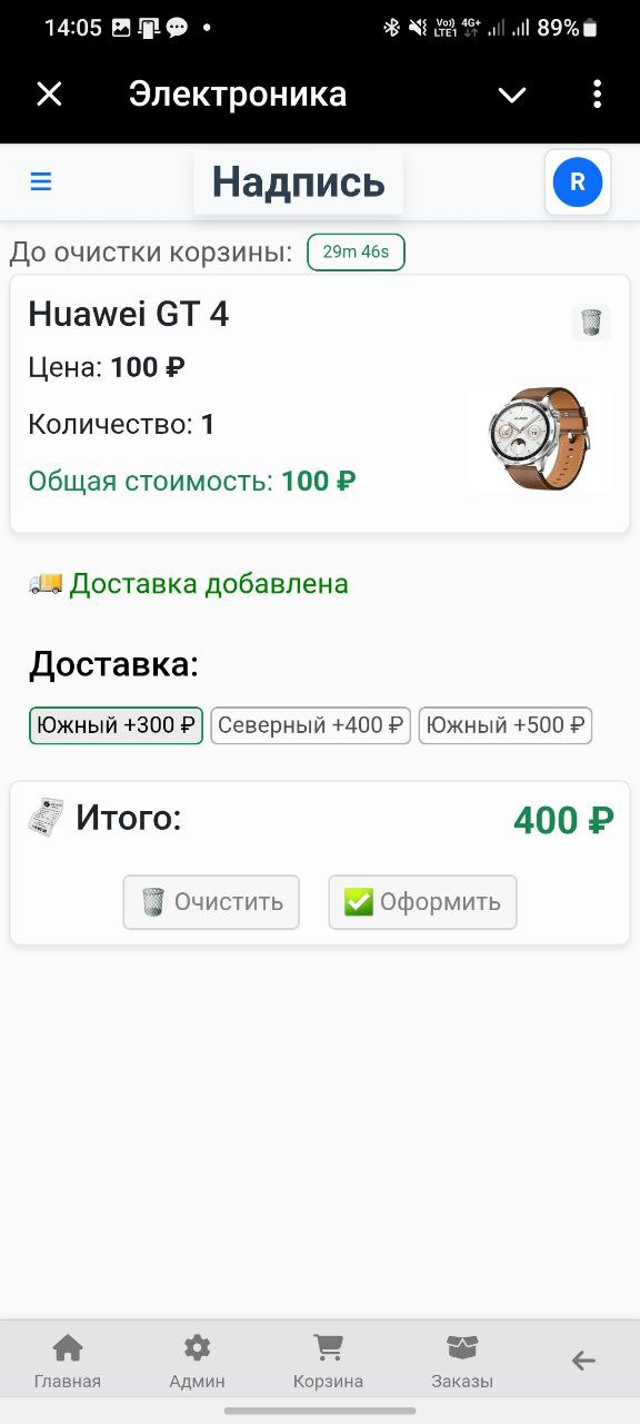 - Очистить корзину (товары возвращаются на остаток)