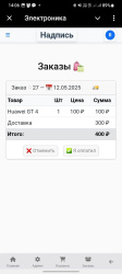 - Отменить заказ (товары возвращаются на остаток)