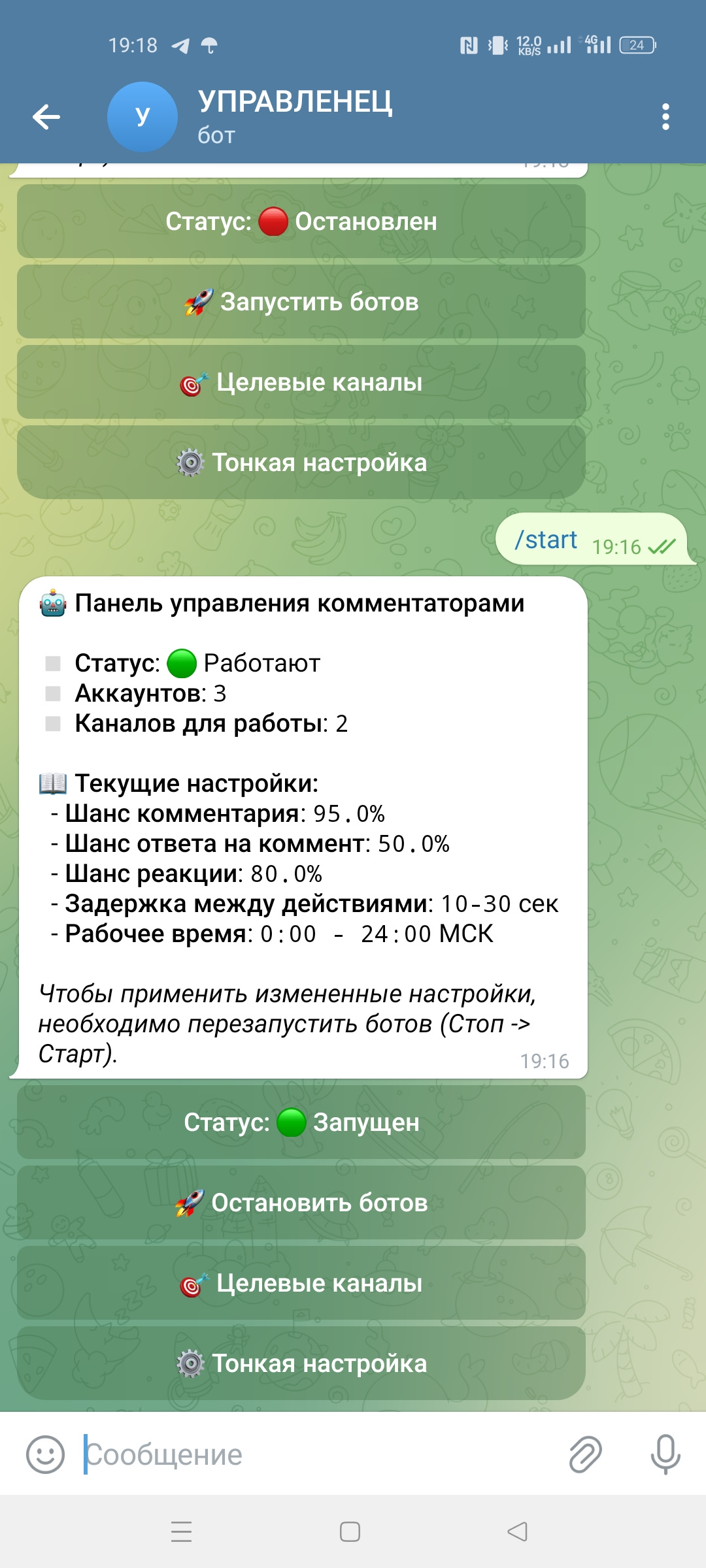 ИИ комментаторы в телеграм, комментируют посты, ставят реакции, отвечают на другие комментарии. Удобная настройка