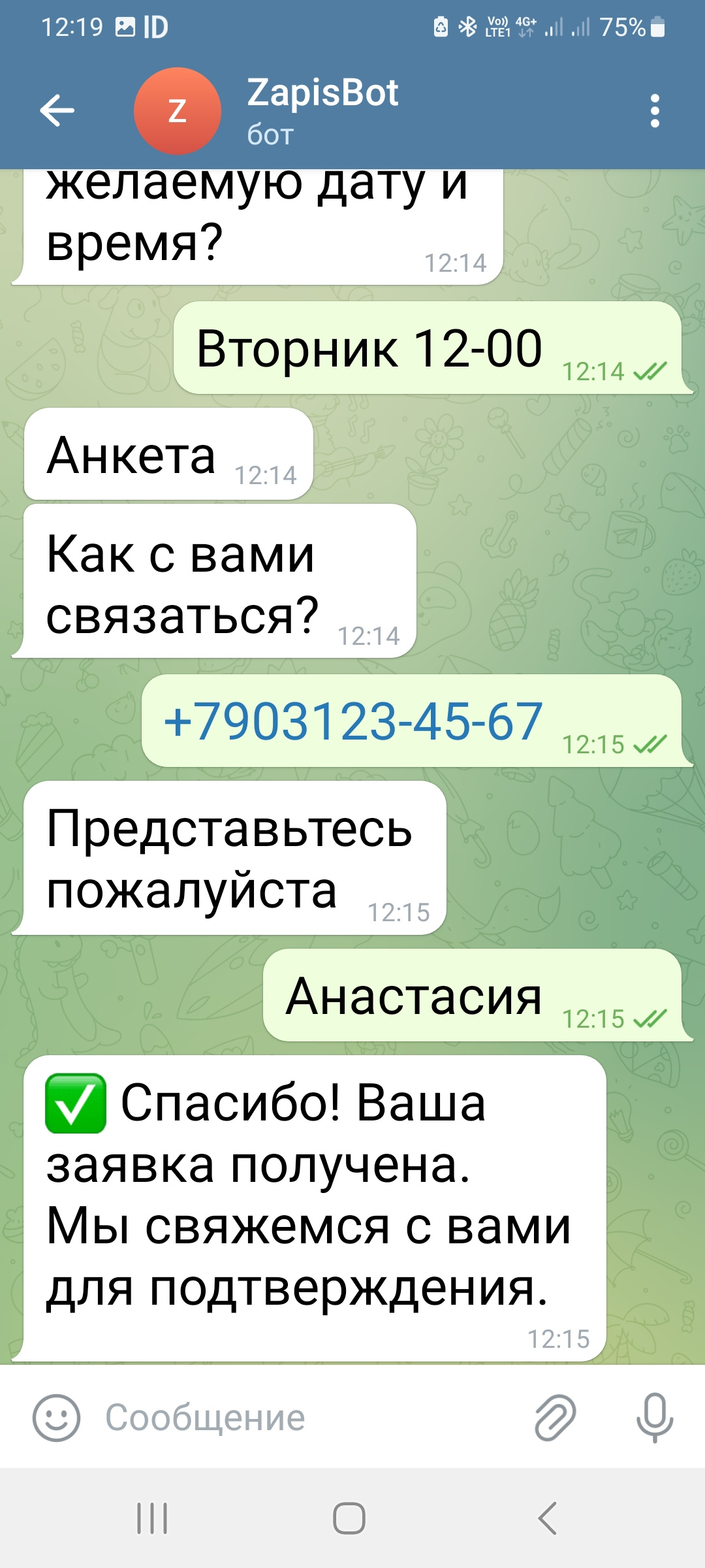 ✅ Записывает клиента — имя, контакт, время