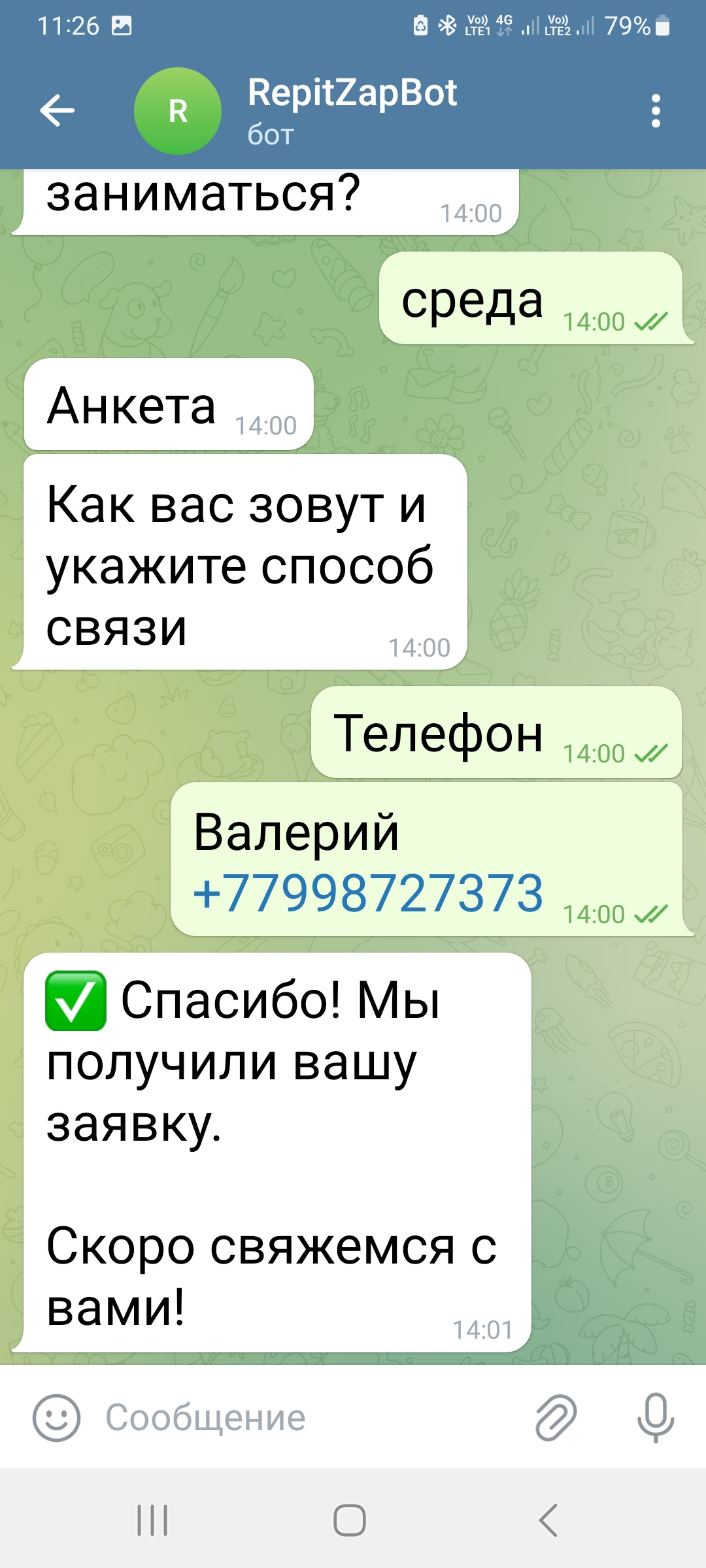 ✔️ Анкета + уведомления