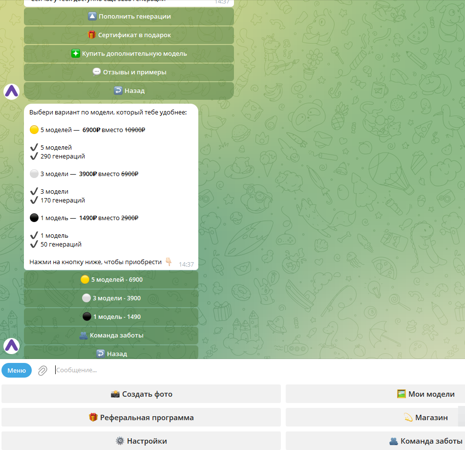 1️⃣ Генерация ультра-реалистичных фотографий человека (или создание любых изображений, ограниченных только фантазией) + создание крутейших видео по описанию (все современные видео нейронки уже подключены)