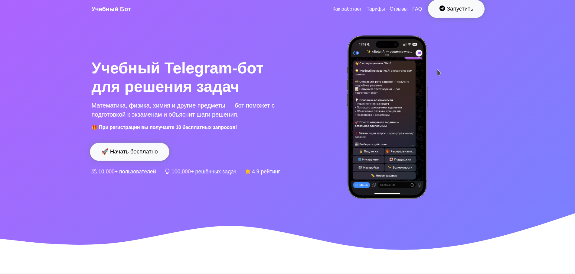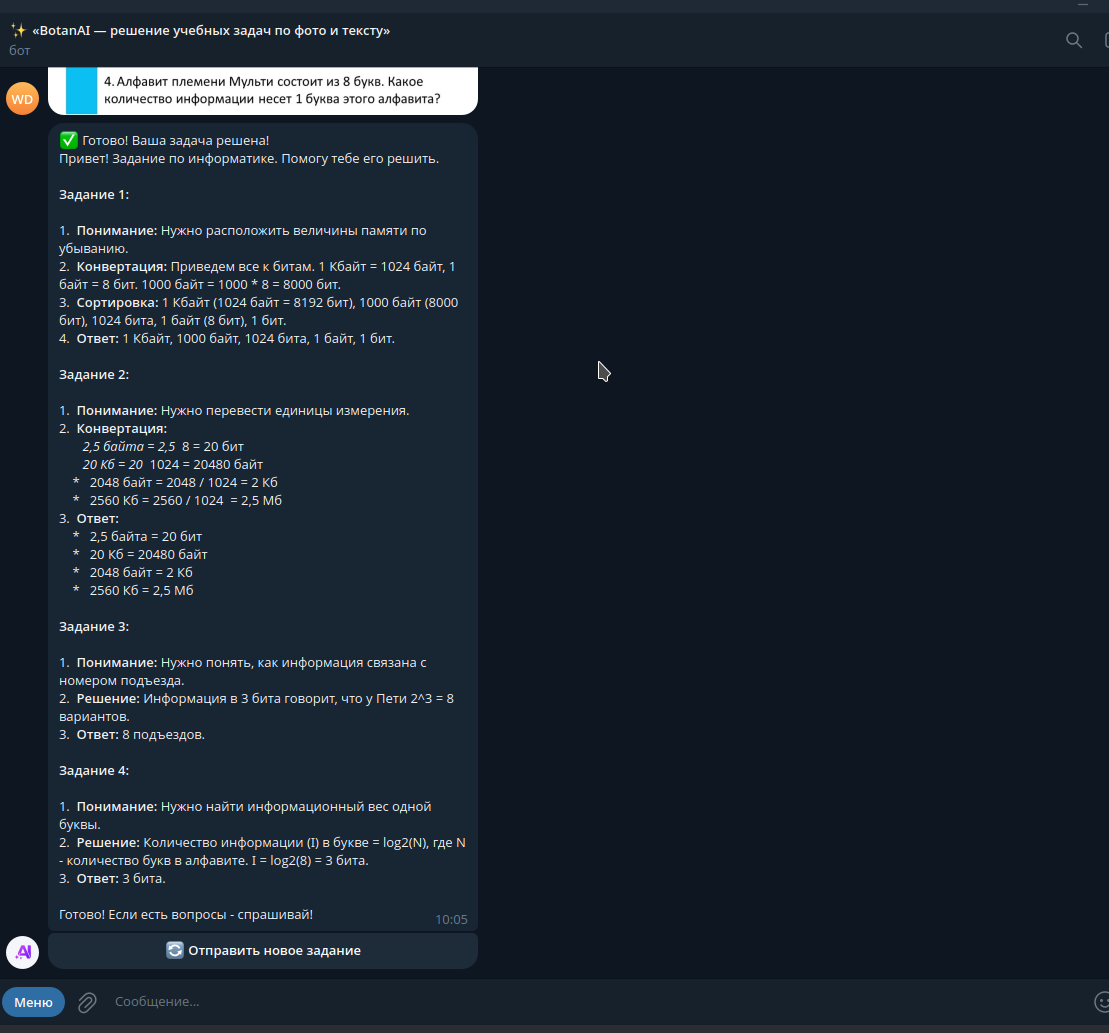 Продаётся скрипт Telegram-бота BotanaAi — интеллектуальный инструмент, который решает школьные и студенческие задания по фото и тексту, по всем предметам.