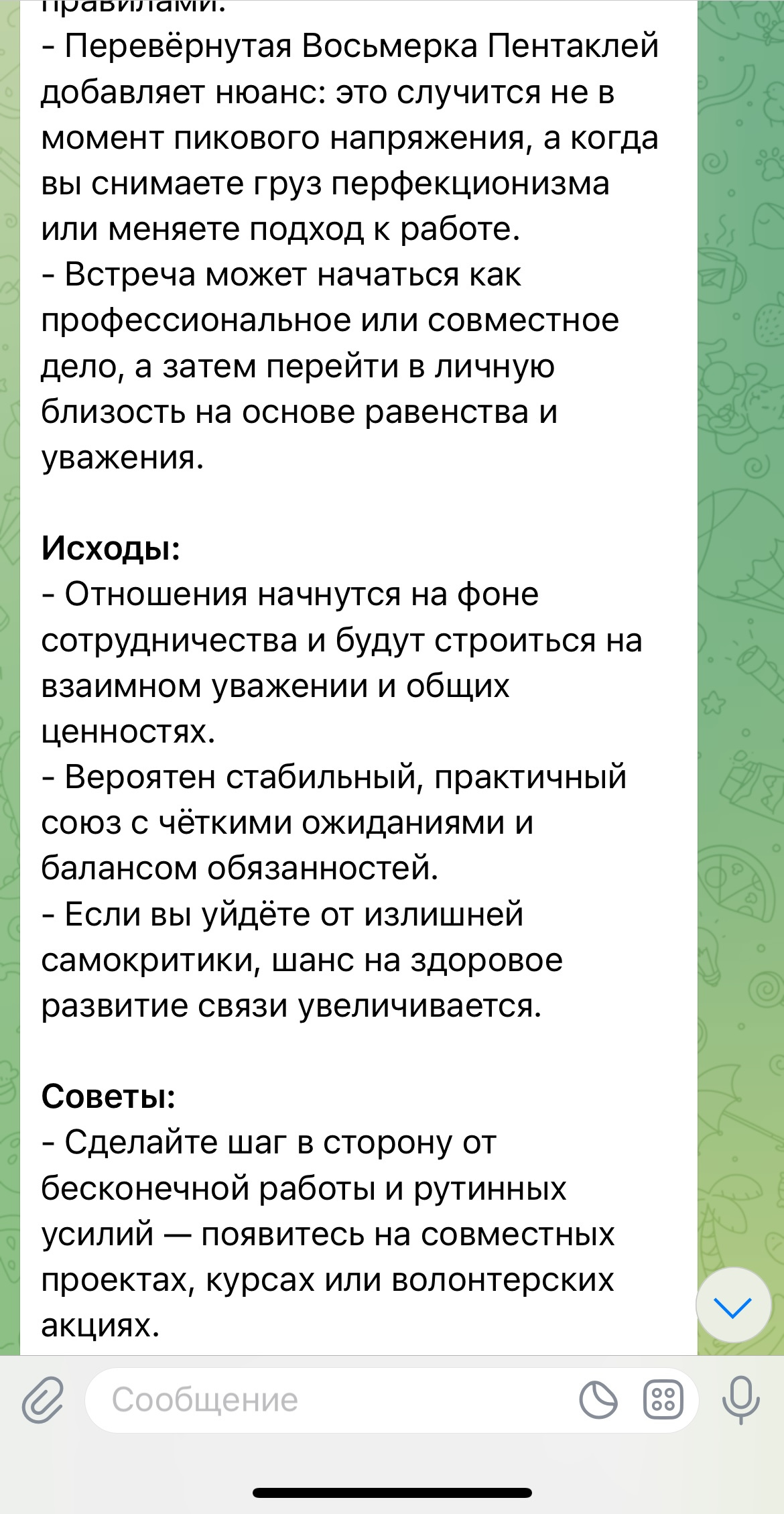 - AI на GPT-5 с кастом-промптами (структура: анализ, связи, исходы, советы) и проверками HTML для красивого текста.