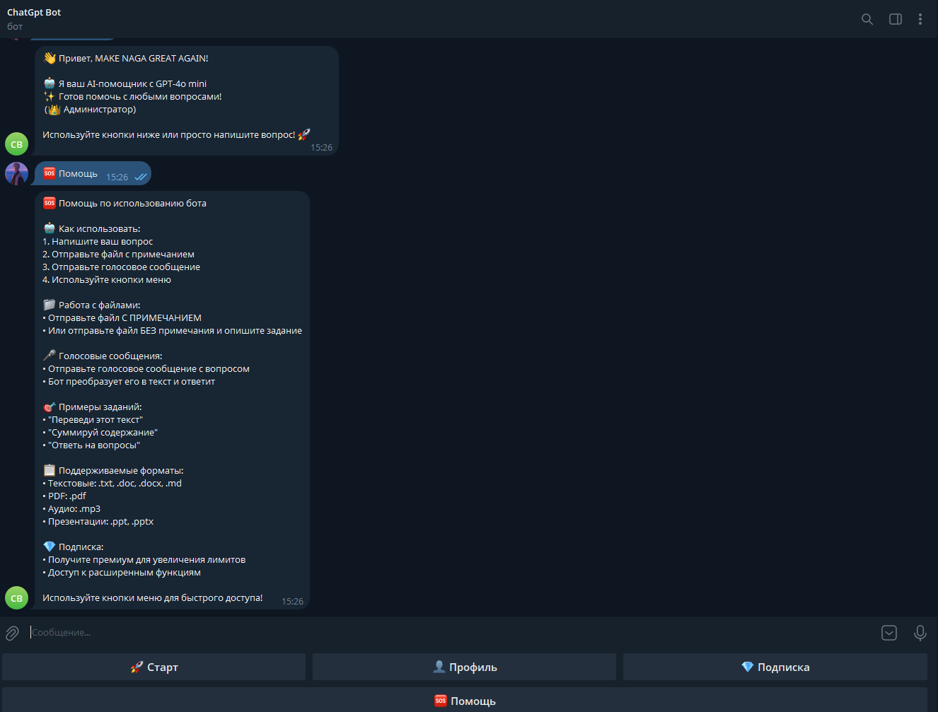 - **AI Модель:** GPT-4o mini (OpenAI)