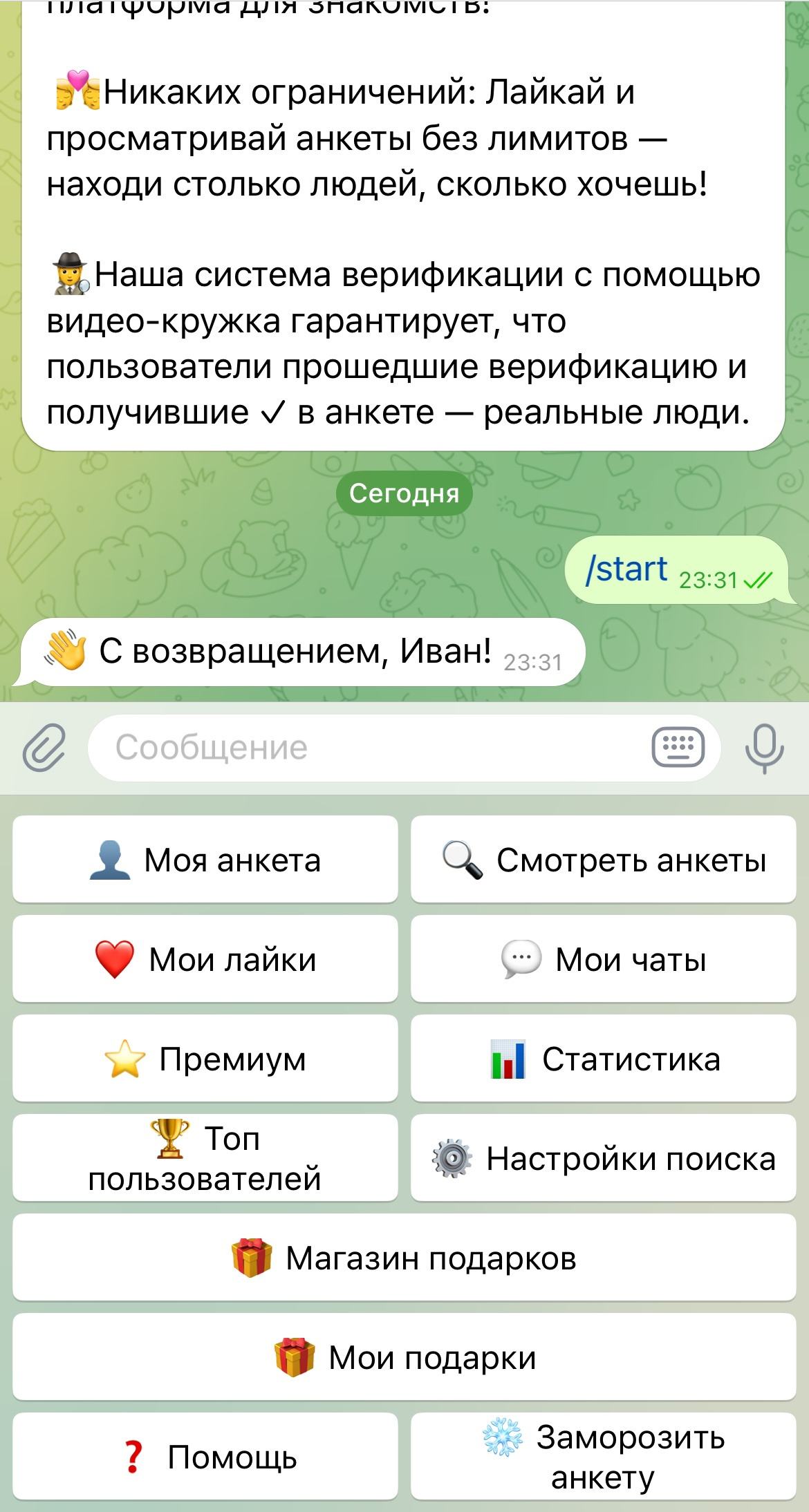 Ультрасовременный бот для знакомств — Tinder 2.0 с AI, геймификацией и монетизацией! На Python (aiogram), MySQL+Redis. Готов к масштабу.