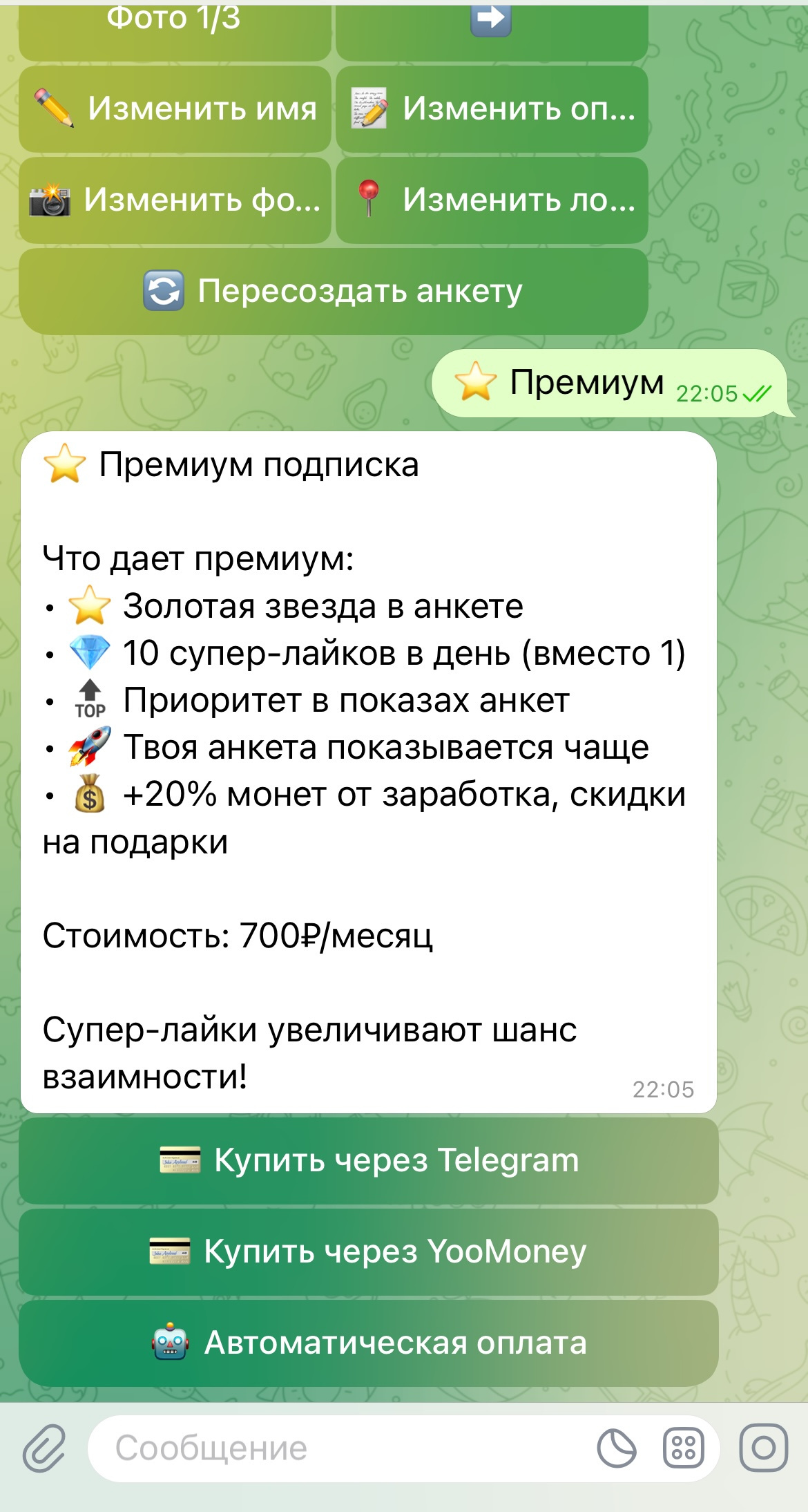 - Премиум: 700р/мес, значок , приоритет в поиске (x2), монет-буст, скидки. Админ-выдача бесплатно.