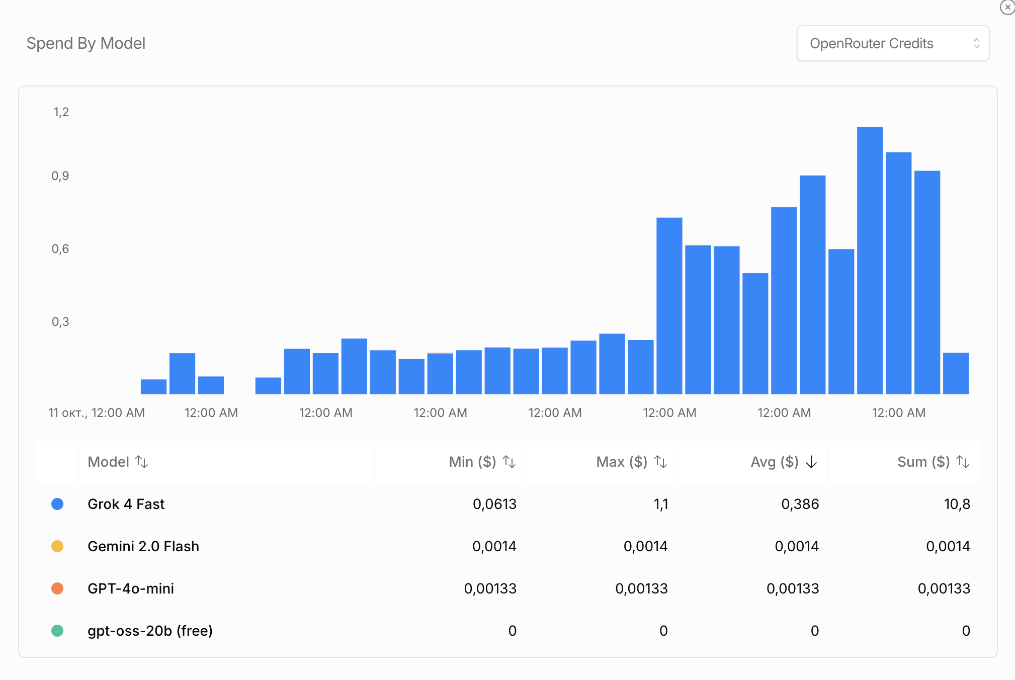 Система поддерживает работу с несколькими провайдерами AI: AITunnel (Grok), OpenAI (GPT-4, GPT-4o), DeepSeek и OpenRouter. Это позволяет гибко выбирать модель в зависимости от требований к качеству, скорости и стоимости.