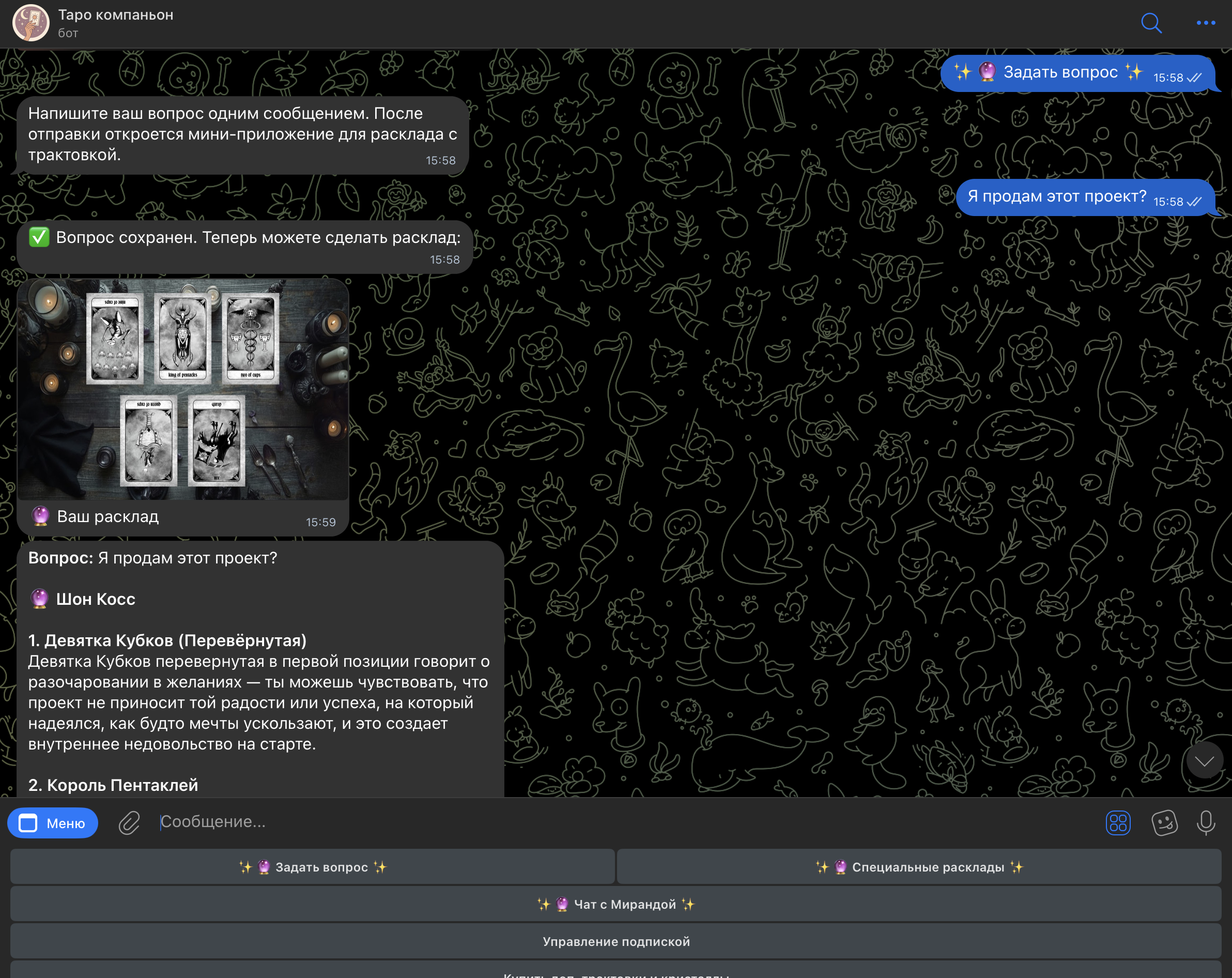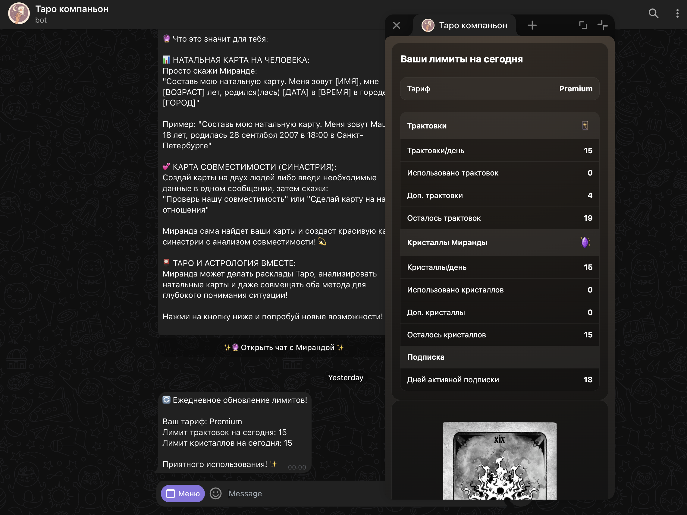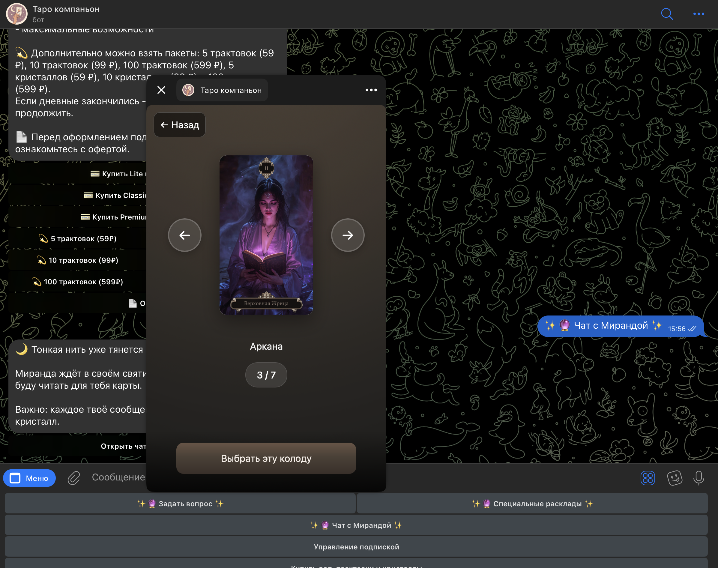 Telegram бот и Mini App Таро Компаньон + Миранда