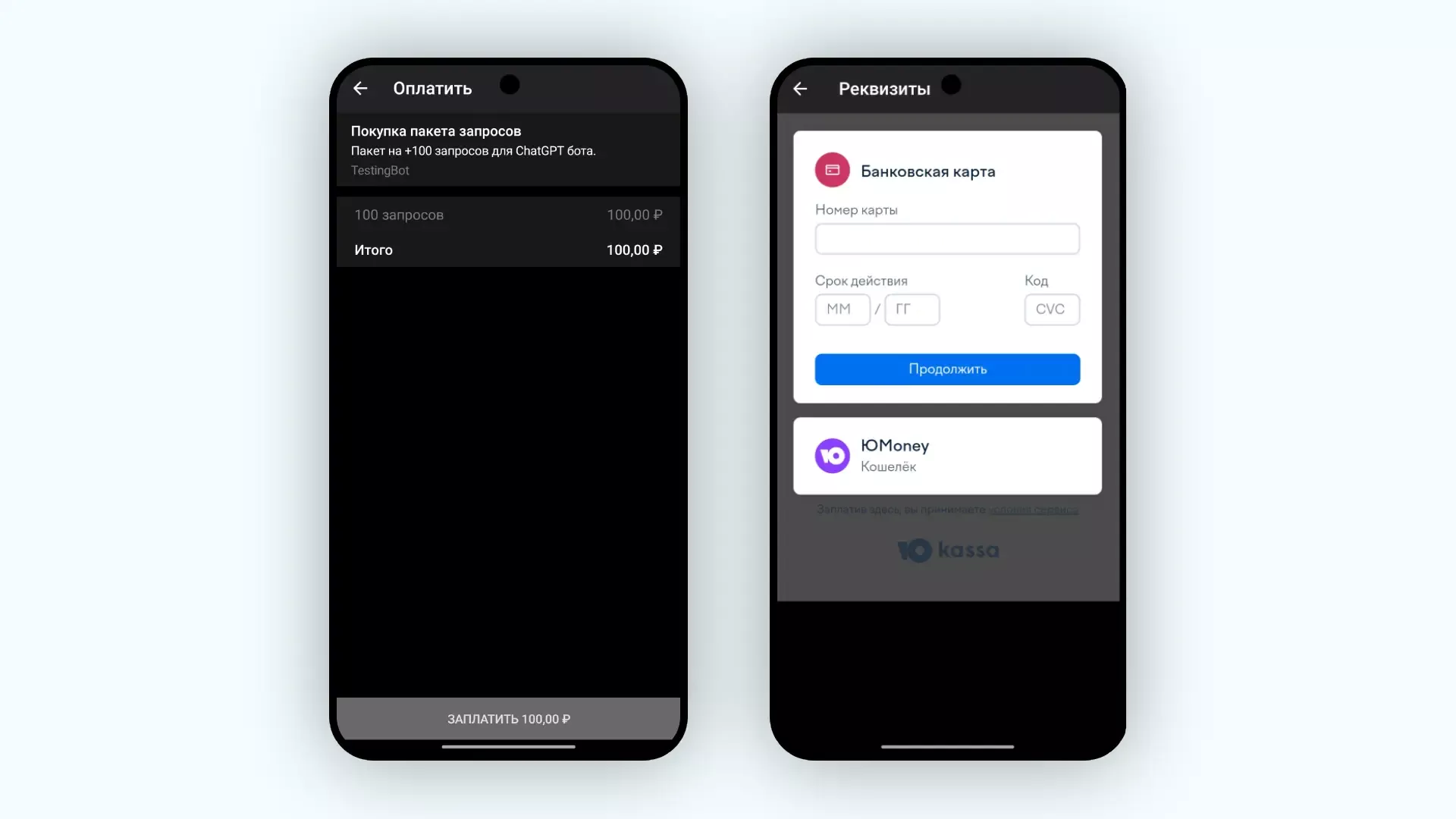 - Встроенные платежи: Интеграция с Telegram Payments. Пользователи могут покупать пакеты запросов в несколько кликов.